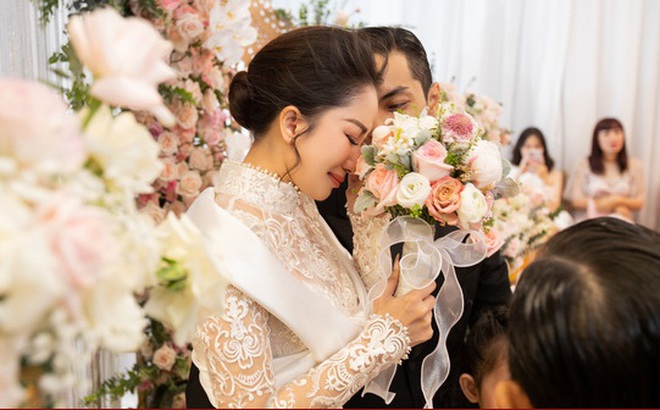 Trong phần trao nhẫn, Khánh Thi nức nở gửi lời đến nửa kia: "Em không biết nói gì hơn. Em không dám tin đây là sự thật. Em yêu anh".