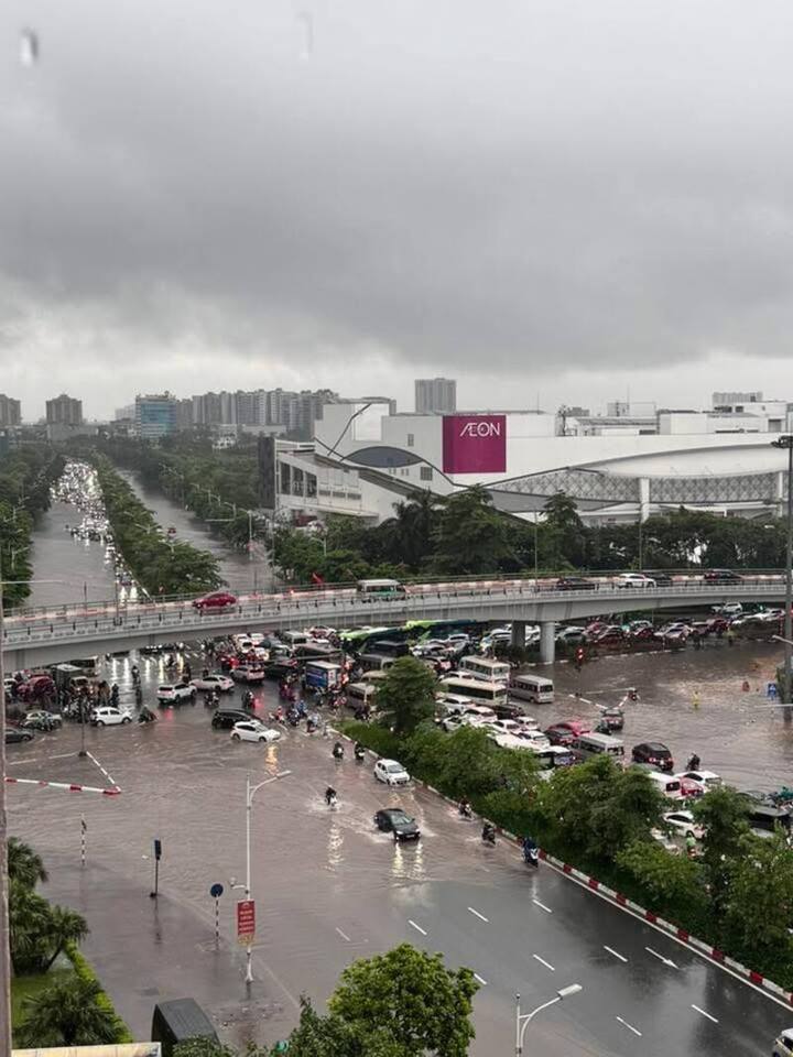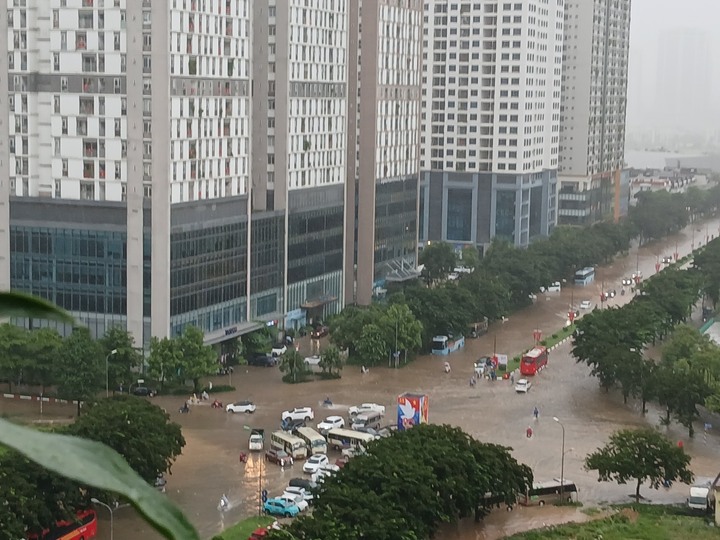 Mai Chi chia sẻ: "Tình hình ngập lụt ở Đại lộ Thăng Long ra phố Khuất Duy Tiến, Nguyễn Xiển. Đường tắc từ lối ra đê Đào Nguyên kéo dài lối vào đường gom. Ngập sâu đoạn ngã tư lối vào đường gom. Một chiếc container đang ngập sâu nửa xe, dừng lại tại đây. Mọi người đi đường gom lối ra cầu Tây Mỗ. Bên cạnh đó, ngã tư từ Trần Duy Hưng đến Nguyễn Xiển ngập hết nửa bánh xe máy. Nói chung là mọi người không có công việc cần thiết thì xin làm việc ở nhà nhé".