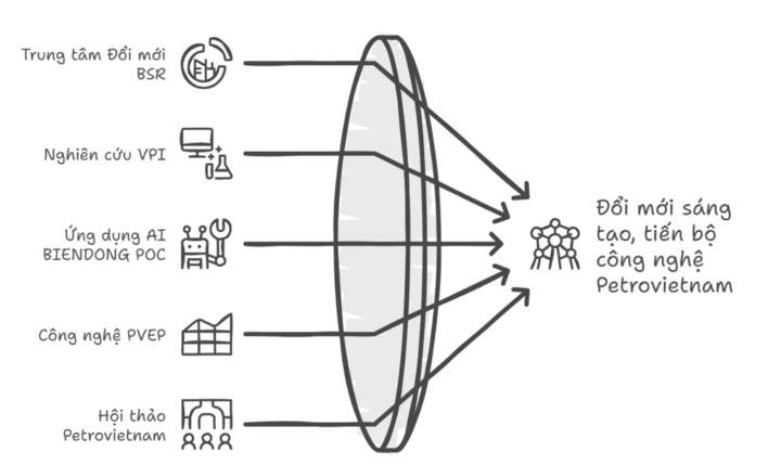 Petrovietnam cũng tổ chức nhiều hội thảo chuyên đề cấp Tập đoàn về định hướng công nghệ chiến lược và giải pháp thúc đẩy KHCN - ĐMST, xác định các công nghệ chiến lược ưu tiên như: công nghệ năng lượng mới (hydro, pin hạt nhân...), vật liệu siêu carbon, AI, dữ liệu lớn, công nghệ biển sâu, ứng dụng công trình số (Digital Factory)...