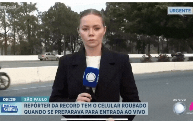 Beatriz Casadei, phóng viên của chương trình tin tức buổi sáng Balanço Geral, đang cầm điện thoại và chờ tín hiệu để phát sóng từ Trại giam Tạm thời Pinheiros IV thì bất ngờ bị một người đi xe đạp lao tới giật phăng điện thoại. Toàn bộ sự việc đã được camera ghi lại, cho thấy tên cướp đã nhanh chóng tẩu thoát, để lại nữ phóng viên choáng váng vì bất ngờ.