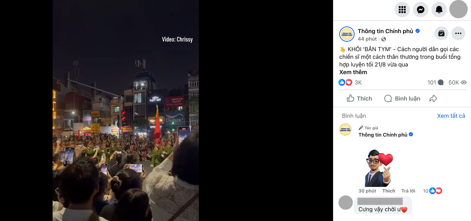 Phía dưới các bài đăng, cư dân mạng để lại nhiều bình luận thích thú, không ngờ có fan service đỉnh cỡ này. Có người còn nói đùa rằng xem chiến sĩ đi điều lệnh mà được nhận “tim” thế này thì cả đời chỉ thấy được vài lần là cùng.