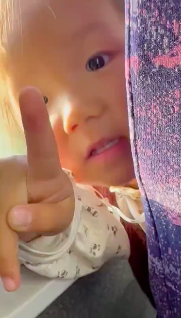 Trong khoang tàu đông đúc, tiếng loa thông báo, tiếng bước chân và tiếng trò chuyện hòa lẫn vào nhau. Thế nhưng cô bé lại cố tình hạ thấp giọng, gần như áp sát vào lưng ghế để hát thật khẽ, như sợ làm phiền người xung quanh. Giọng hát non nớt, mềm mại nhưng đúng giai điệu, trọn vẹn từng câu.
