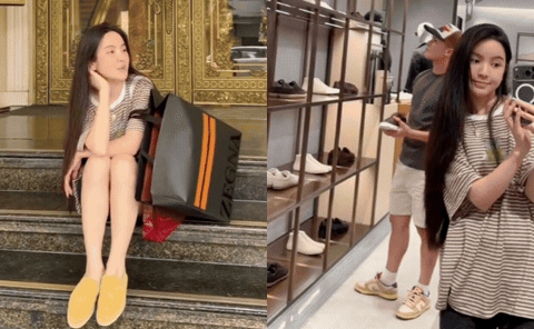 Thay vì những bộ cánh lộng lẫy hay phong thái nữ tổng tài thường thấy trên livestream, Chu Thanh Huyền gây chú ý với bộ đồ cực kỳ thoải mái: Áo thun kẻ dáng rộng và quần cộc. Khi ra về, cô nàng còn không ngần ngại ngồi bệt ngay bậc thềm cửa trung tâm thương mại để nghỉ chân, bên cạnh là chiếc túi giấy mua sắm của thương hiệu xa xỉ.