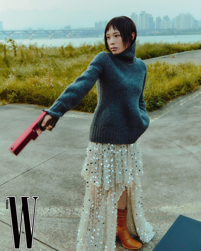 Tạp chí thời trang Hàn Quốc W Korea mới đây đã phát hành bộ ảnh nữ xạ thủ Kim Ye Ji mặc đồ hiệu cao cấp, kết hợp cùng các dụng cụ quen thuộc của môn bắn súng. Cô nàng thể hiện thần thái ấn tượng trong lần đầu làm người mẫu ảnh