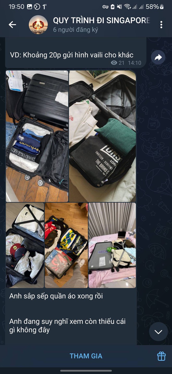 “Đang lướt hội nhóm trên telegram thì lạc vào gr (PV: group - nhóm) viết kịch bản để đi lừa đảo. Mời anh chị cô chú bác vào xem và cảnh báo chiêu trò đến người thân mình, đặc biệt là bậc trung niên vì bọn này chủ yếu lừa đảo người tuổi trung niên là nhiều.”