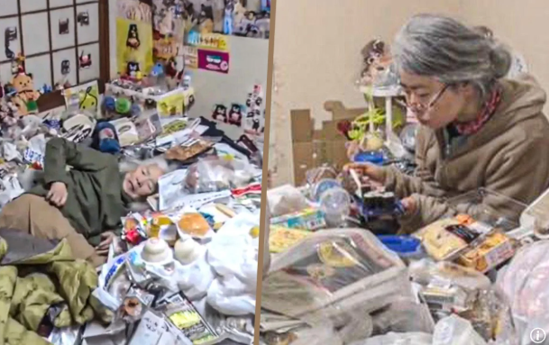 Thế nhưng thực tế hoàn toàn trái ngược. Căn hộ của hai mẹ con giống như một bãi rác thu nhỏ. Lối vào chật kín những hộp quà chưa mở. Phòng khách chất đầy sách, lon, túi mua sắm, khiến việc di chuyển khó khăn. Quầy bếp ngổn ngang gia vị, bát đĩa; nồi cơm điện hỏng từ lâu. Hàng loạt thực phẩm chưa mở bao bì nhưng đã hết hạn. Phòng ngủ chật đến mức cửa chỉ hé được vài chục centimet vì đồ đạc chất đống.