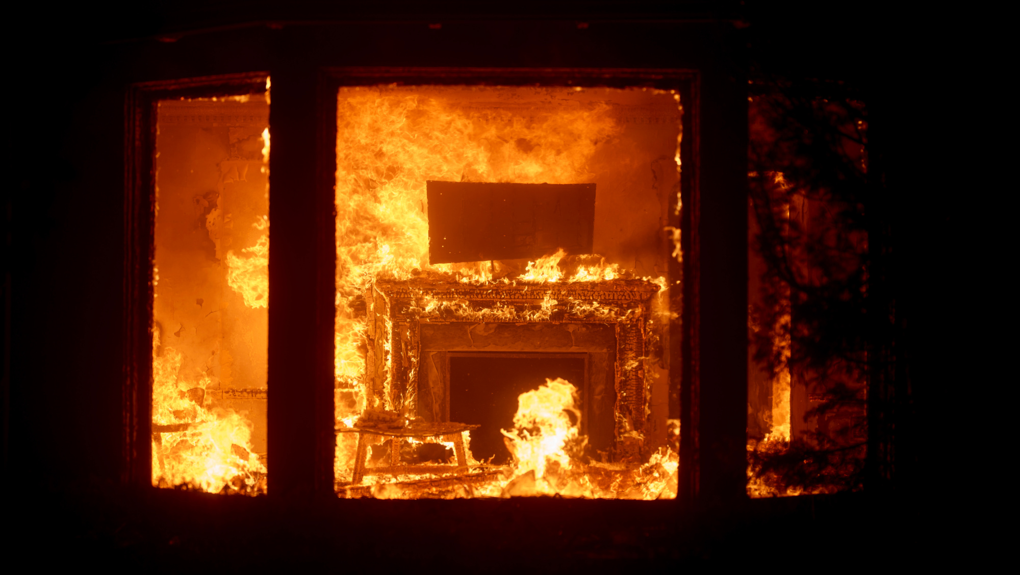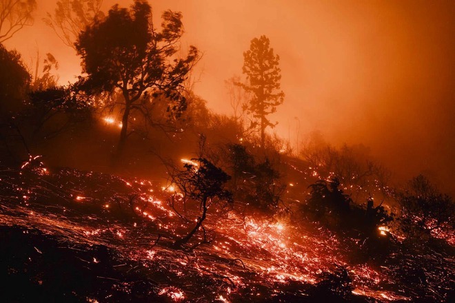 Ngọn lửa từ đám cháy Palisades thiêu rụi một ngôi nhà vào ngày 8 tháng 1. Eric Thayer/Getty Images