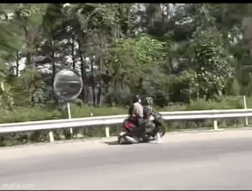 Chiếc xe máy chở theo 2 cô gái bất ngờ lao vào hộ lan can bên đường khi đi qua khúc cua khiến nhiều người hú vía.
