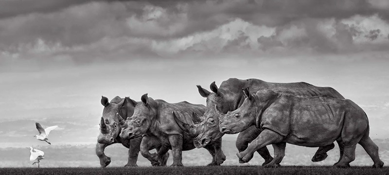 Hai nhiếp ảnh gia Preeti và Prashant Chacko từ UAE đoạt giải hạng mục ảnh đen trắng với khoảnh khắc tê giác và cò gặp nhau ở Khu bảo tồn Solio, Kenya.
