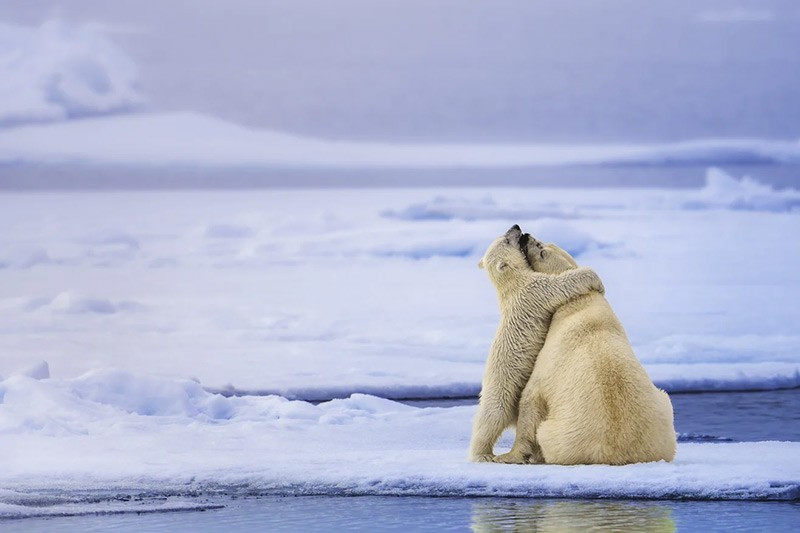 Cái ôm ấm áp - Gấu Bắc Cực con 6 tháng tuổi ôm mẹ, được nhiếp ảnh gia Michael Stavrakakis ghi lại tại Svalbard, Na Uy.