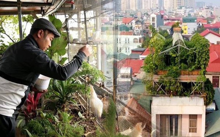 Khu vườn hữu cơ tuần hoàn trên sân thượng của gia đình anh Hà Giang