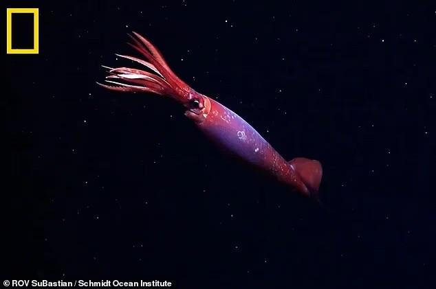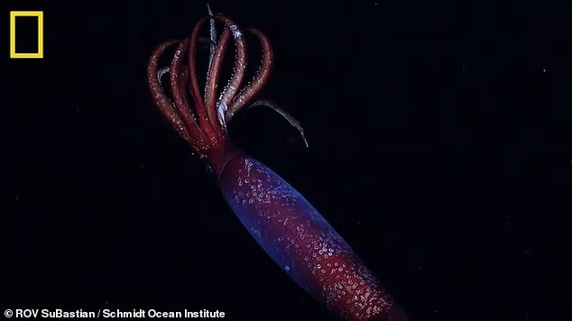 Đầu năm nay, ROV SuBastian của Schmidt Ocean Institute đã ghi lại cảnh quay đầu tiên về mực khổng lồ gần khu vực này. Mực khổng lồ có thể dài tới 7 m và nặng tới 500 kg, là động vật không xương sống nặng nhất trên hành tinh.
