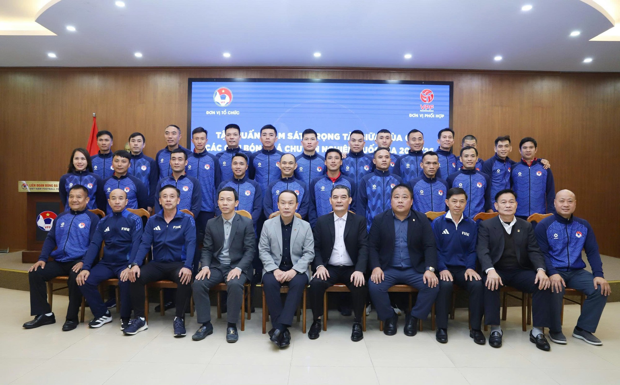 Lãnh đạo VFF, VPF, cùng các thành viên Ban trọng tài, giám sát và trọng tài dự buổi khai mạc tập huấn giữa mùa giải.