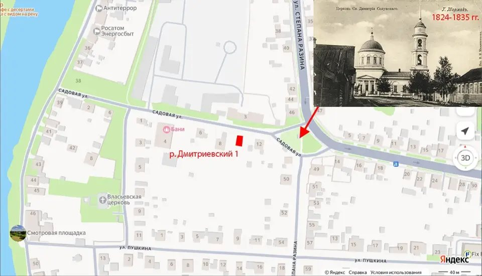 Phát hiện này nằm tại số nhà 10, phố Sadovaya. Tuy nhiên, vào thời điểm trước Cách mạng, cuối thế kỷ XIX - đầu thế kỷ XX, con phố này có tên là Dmitrievskaya — đặt theo tên của ngôi đền nằm cách ngôi nhà chỉ khoảng 60 mét.