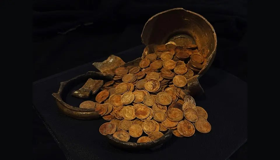 Trang Vsluh của Nga mô tả, khi các nhà khoa học nỗ lực đưa hiện vật ra khỏi lòng đất, thành của chiếc hũ gốm đã không chịu nổi áp lực và vỡ tan. Ngay lập tức, những đồng tiền vàng tuôn ra xối xả như mưa, văng ra khắp các phía.
