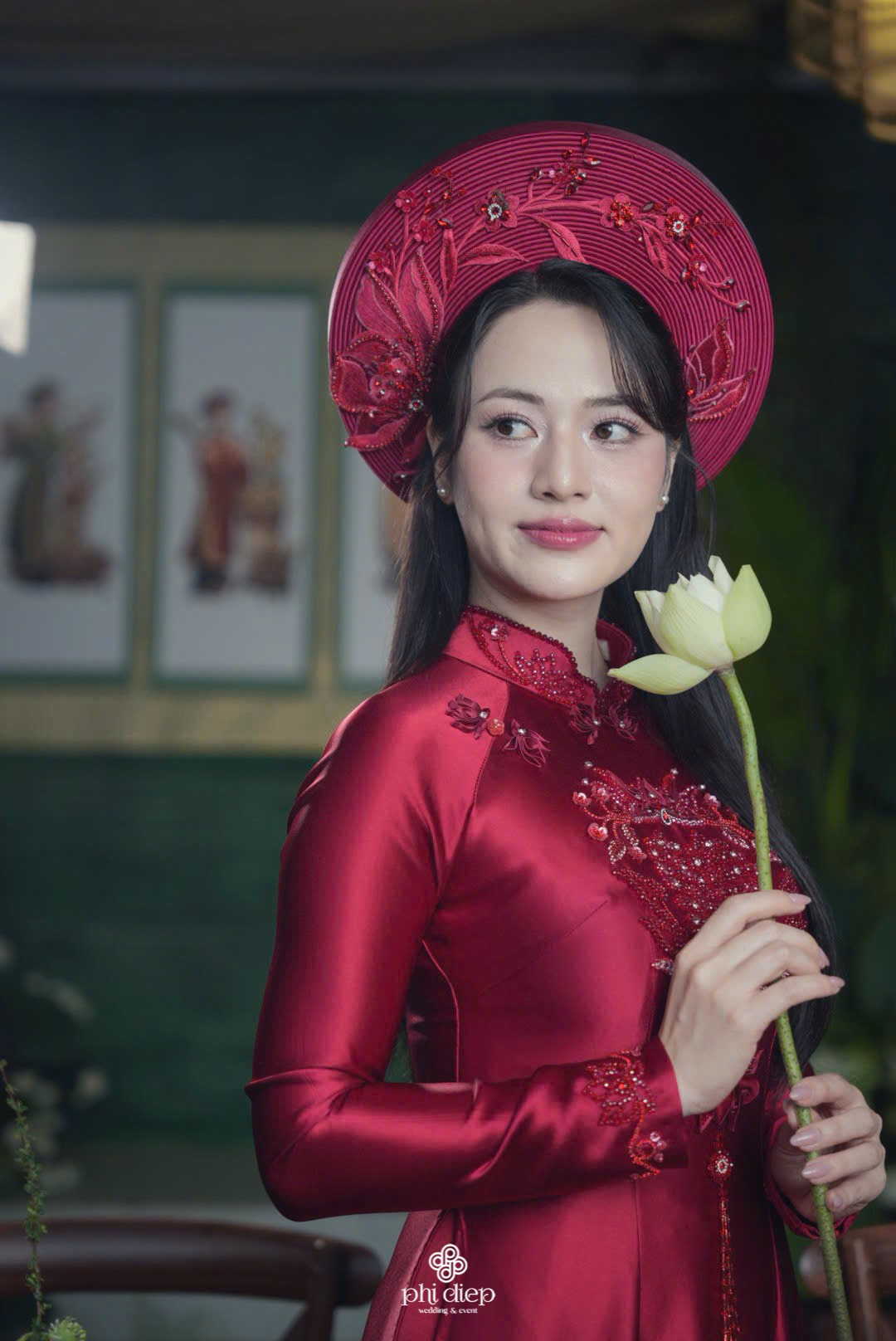 Thiết kế áo dài thứ hai được Việt Hoa mặc trong lễ ăn hỏi và rước dâu.