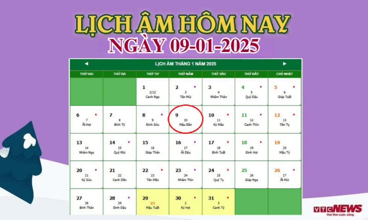 Độc giả có thể tra cứu lịch âm hôm nay ngày 9/1/2025 bằng cách xem trên lịch in. Ngoài ra, bạn cũng có thể tìm kiếm thông tin lịch âm trên Báo điện tử VTC News .