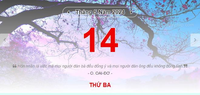Dương lịch: Thứ 3, ngày 14/5/2024.