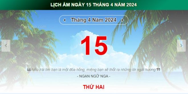 Thông tin về lịch âm ngày 15/4