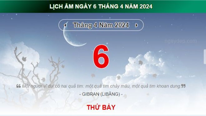 Dương lịch: Thứ 7, ngày 6/4/2024.