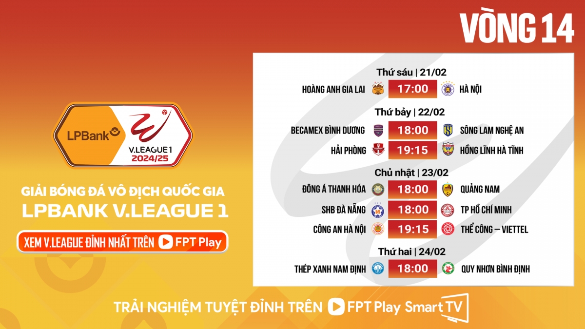 Hôm nay sẽ diễn ra 2 trận đấu tiếp theo của vòng 14 V-League 2024/2025.