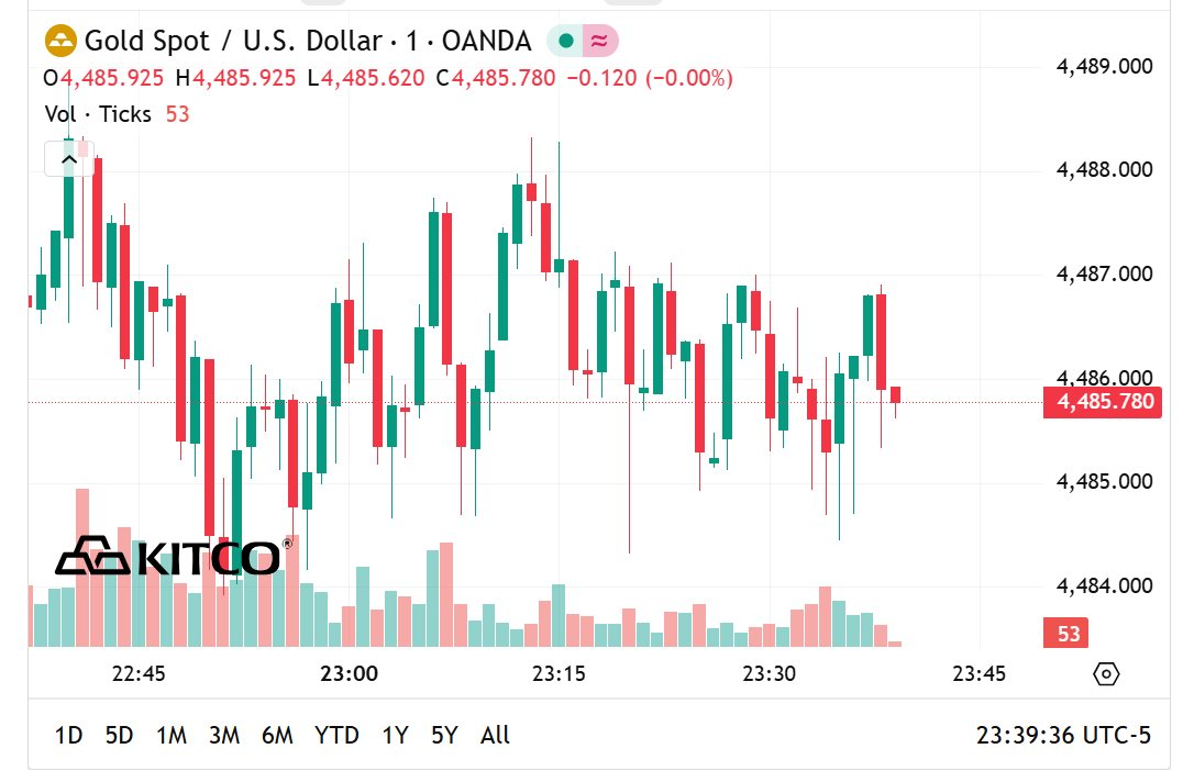Biến động giá vàng trên sàn Kitco lúc 11h40 theo giờ Việt Nam.