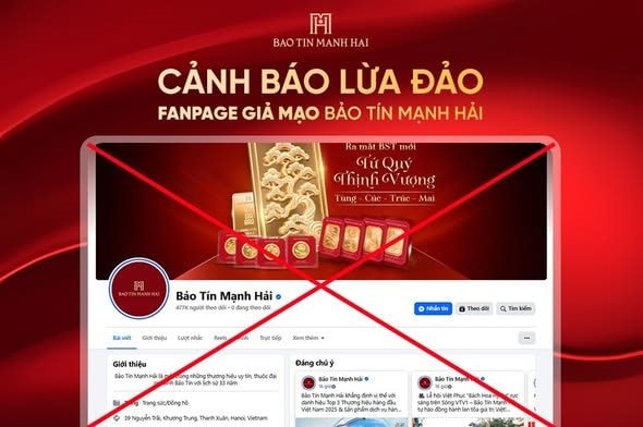 Bảo Tín Mạnh Hải vừa phát đi thông báo về việc thời gian gần đây xuất hiện fanpage giả mạo Bảo Tín Mạnh Hải với kịch bản lừa đảo được dàn dựng tinh vi, dễ gây nhầm lẫn ngay cả với những khách hàng đã từng mua hàng chính hãng, gây ảnh hưởng và thiệt hại trực tiếp đến quyền lợi của khách hàng.
