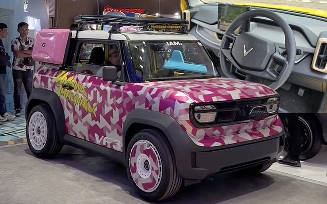 Ngoài ra, ở phía ngoài khu vực triển lãm còn xuất hiện thêm ít nhất 2 chiếc VF 3 khác với màu vàng và hồng khác biệt. Điểm đáng chú ý của 2 chiếc xe này là biển số, tức là xe đã được cho lăn bánh hợp pháp trên đường dù chưa ra mắt.