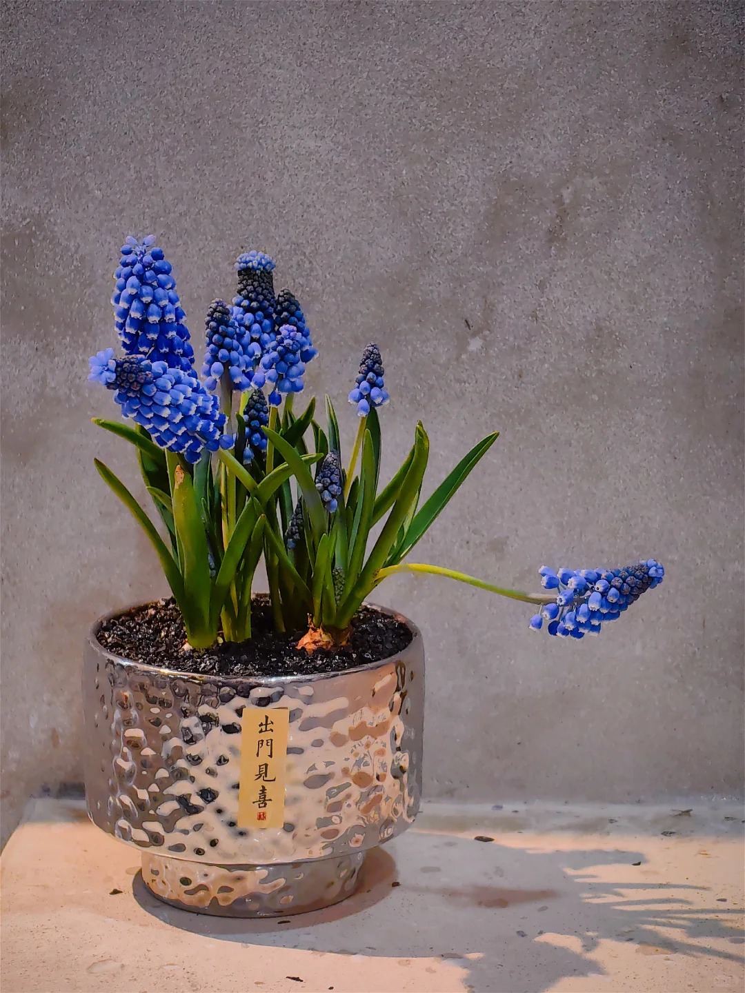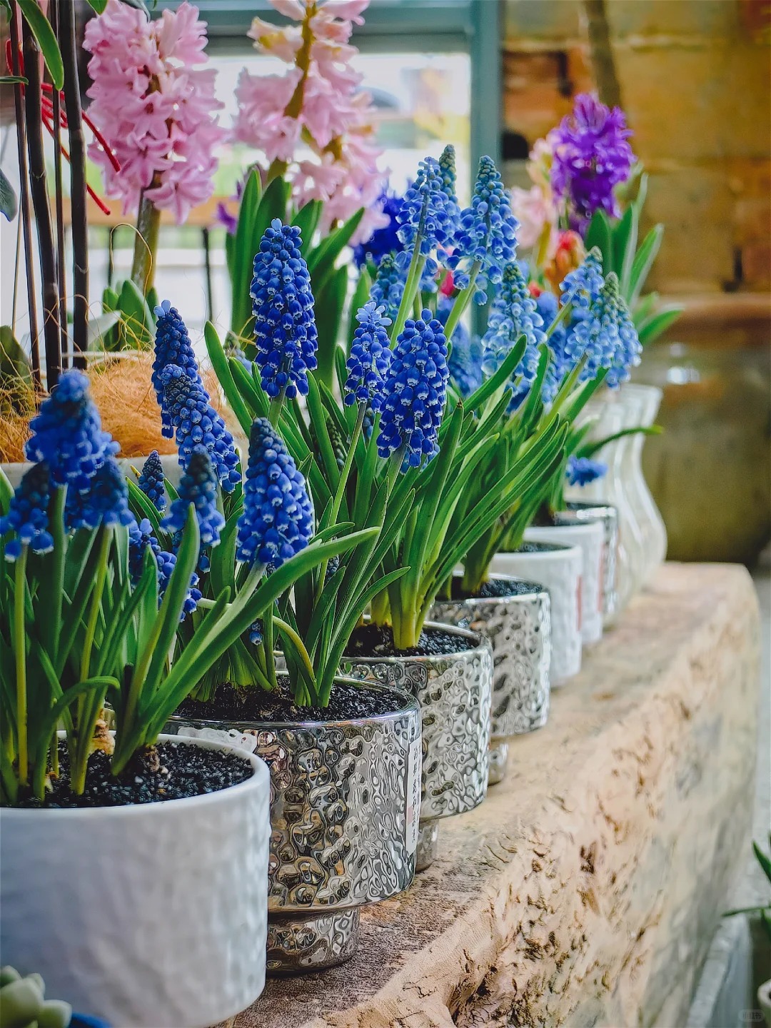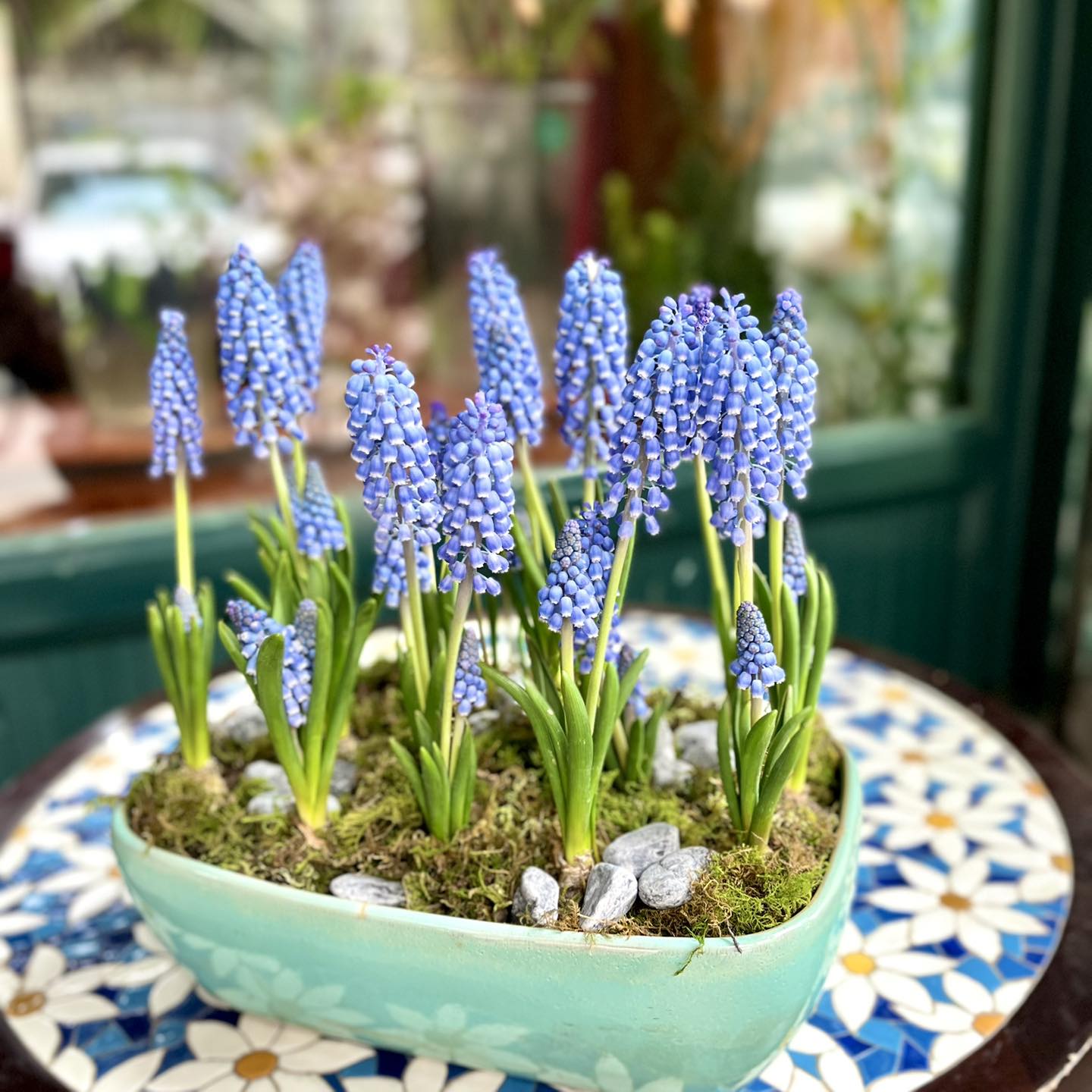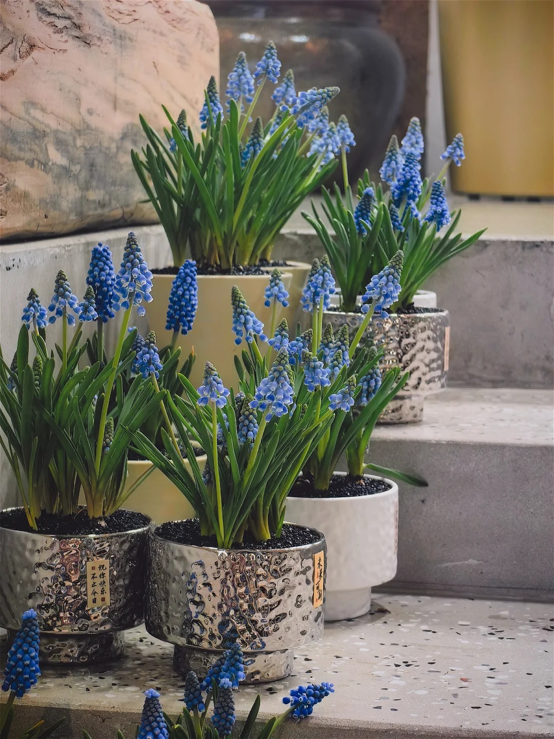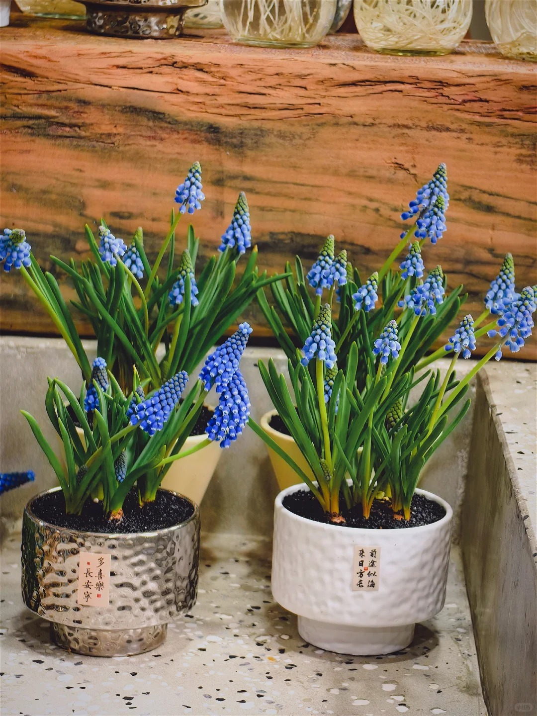 Không phô trương cầu kỳ, loài hoa này chinh phục người chơi bởi sắc tím xanh mê hoặc và hình dáng những chùm hoa bụ bẫm hệt như chùm nho tí hon. Chỉ với khoảng 79k cho một chậu 3 củ cây xinh xắn, chị em đã có thể mang cả một góc trời Âu lãng mạn và sự may mắn, sum vầy về đặt ngay trên bàn làm việc.