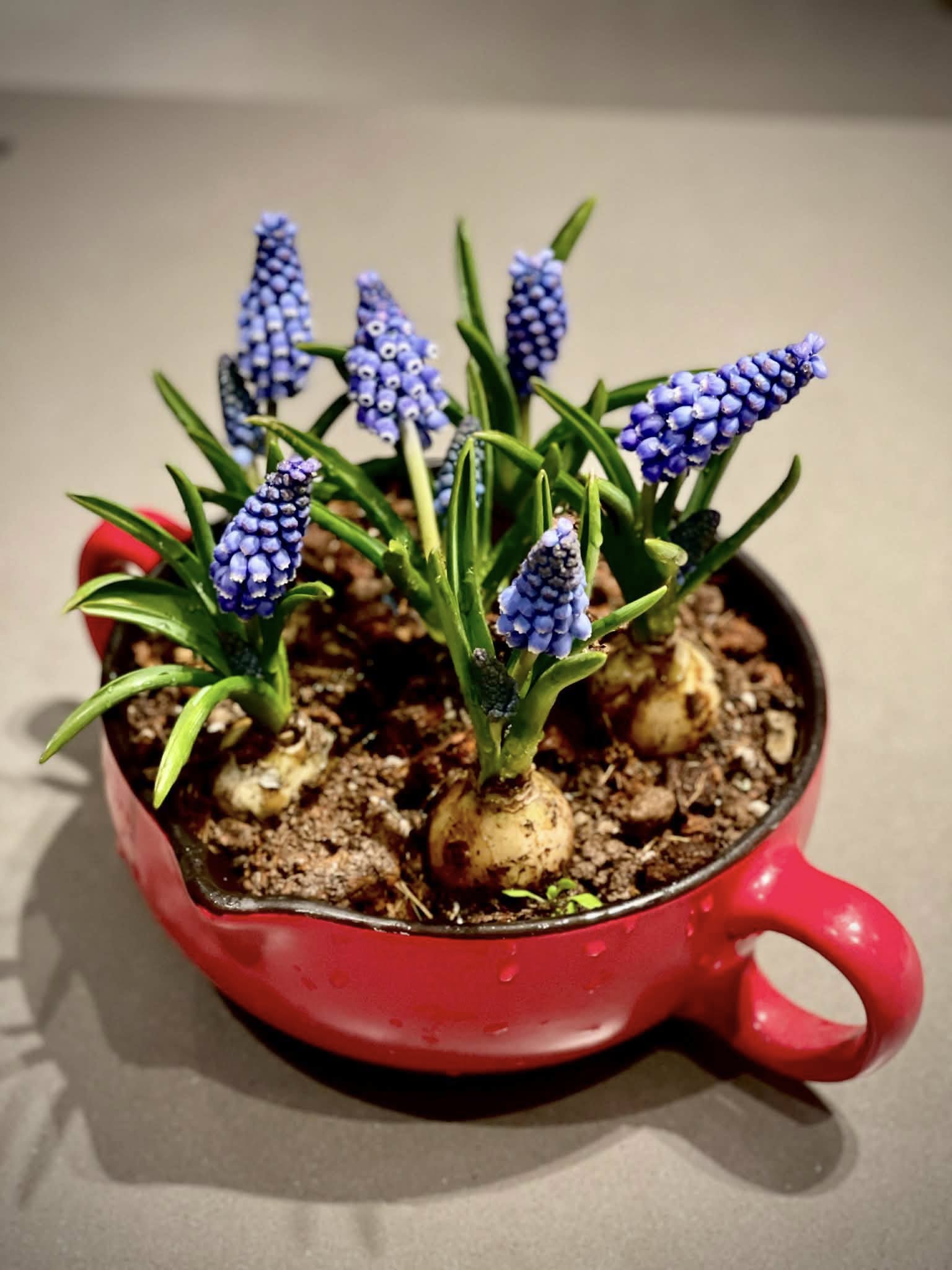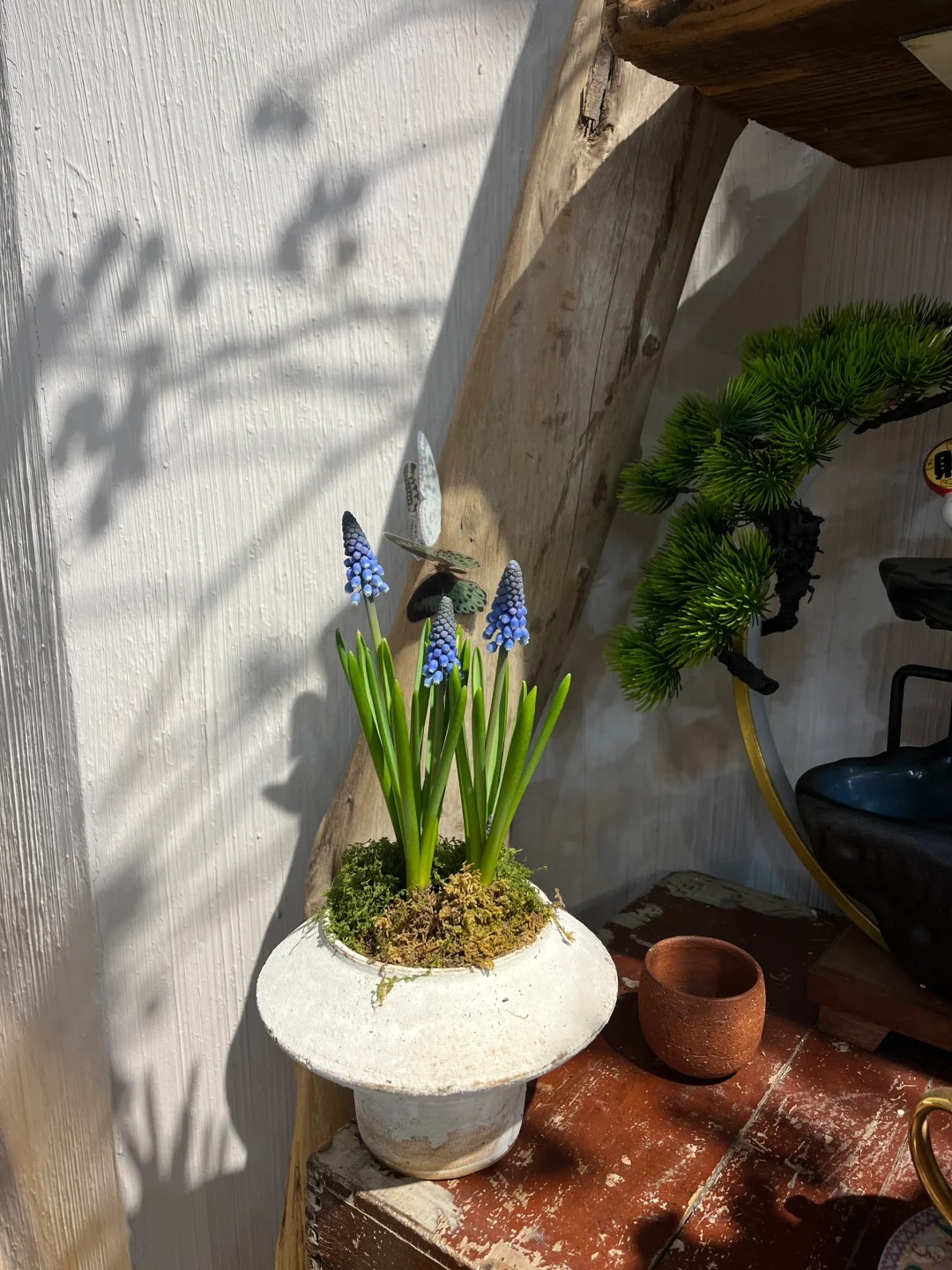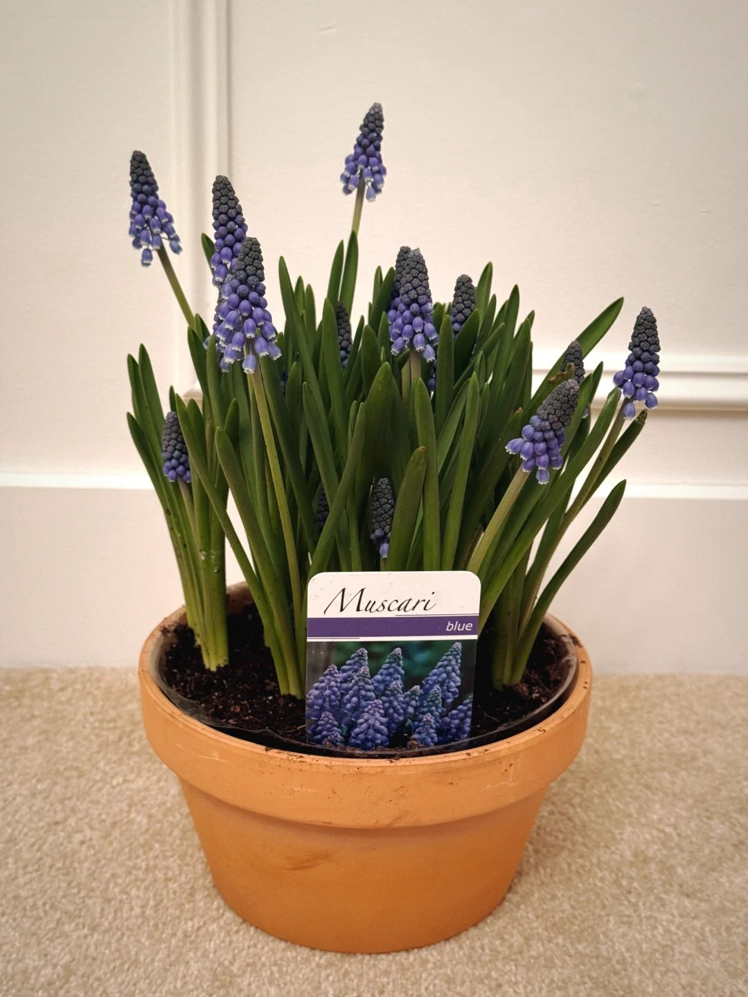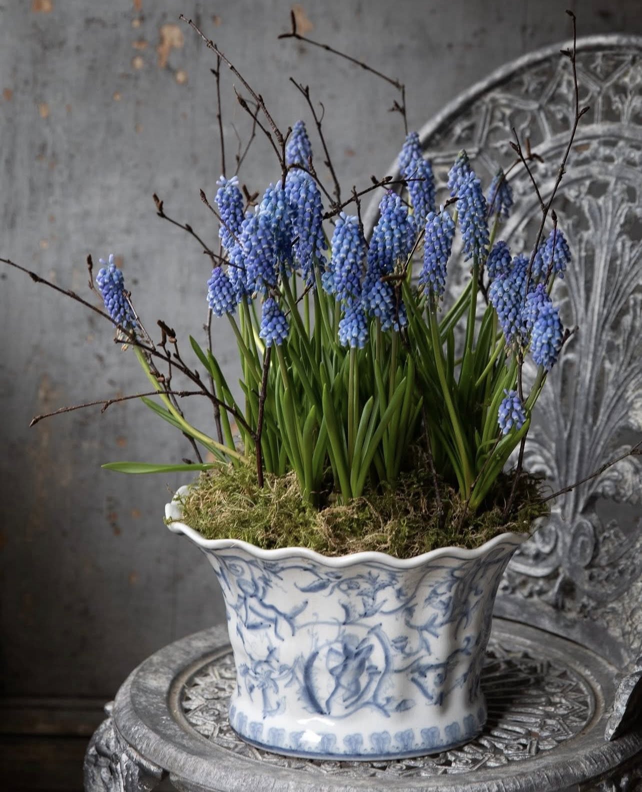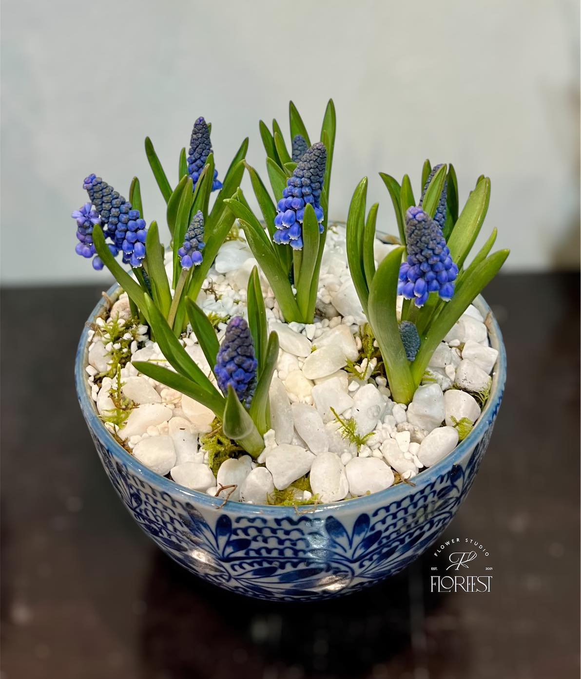 Không phô trương cầu kỳ, loài hoa này chinh phục người chơi bởi sắc tím xanh mê hoặc và hình dáng những chùm hoa bụ bẫm hệt như chùm nho tí hon. Chỉ với khoảng 79k cho một chậu 3 củ cây xinh xắn, chị em đã có thể mang cả một góc trời Âu lãng mạn và sự may mắn, sum vầy về đặt ngay trên bàn làm việc.