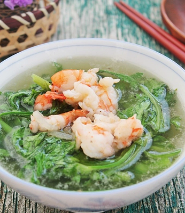 Rau cải cúc có vị ngọt nhẹ và mùi thơm đặc trưng, rất hợp để nấu canh trong những ngày trời lạnh. Khi kết hợp với tôm tươi, món ăn không chỉ ngon miệng mà còn bổ dưỡng, dễ ăn và không gây ngán. Đây là món canh thanh mát, đơn giản nhưng luôn được nhiều gia đình yêu thích trong bữa cơm hàng ngày.