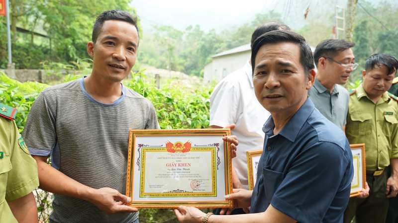 Anh Nguyễn Anh Quảng (bên trái) nhận giấy khen (Ảnh: NXH)