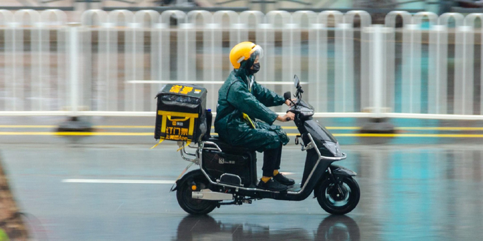 Một nhân viên giao hàng trên đường phố Thượng Hải, Trung Quốc