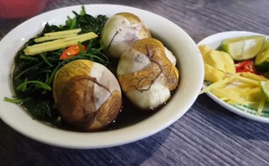 - Đậy nắp nồi sứ lại cho lên bếp và bật lửa, lúc này nên để lửa to (khoảng 5 phút). Khi thấy nồi tỏa nhiệt thì giảm lửa nhỏ mức thấp nhất, đun thêm khoảng 25 phút, mở nắp ra kiểm tra xem khoai đã chín chưa bằng cách thử dùng đũa lúc cắm vào khoai. Nếu thấy đũa dễ dàng xuyên qua thì có nghĩa là khoai đã chín. Cuối cùng, tắt bếp, đậy nắp lại khoảng 5 phút cho khoai chín hoàn toàn và thưởng thức nóng.