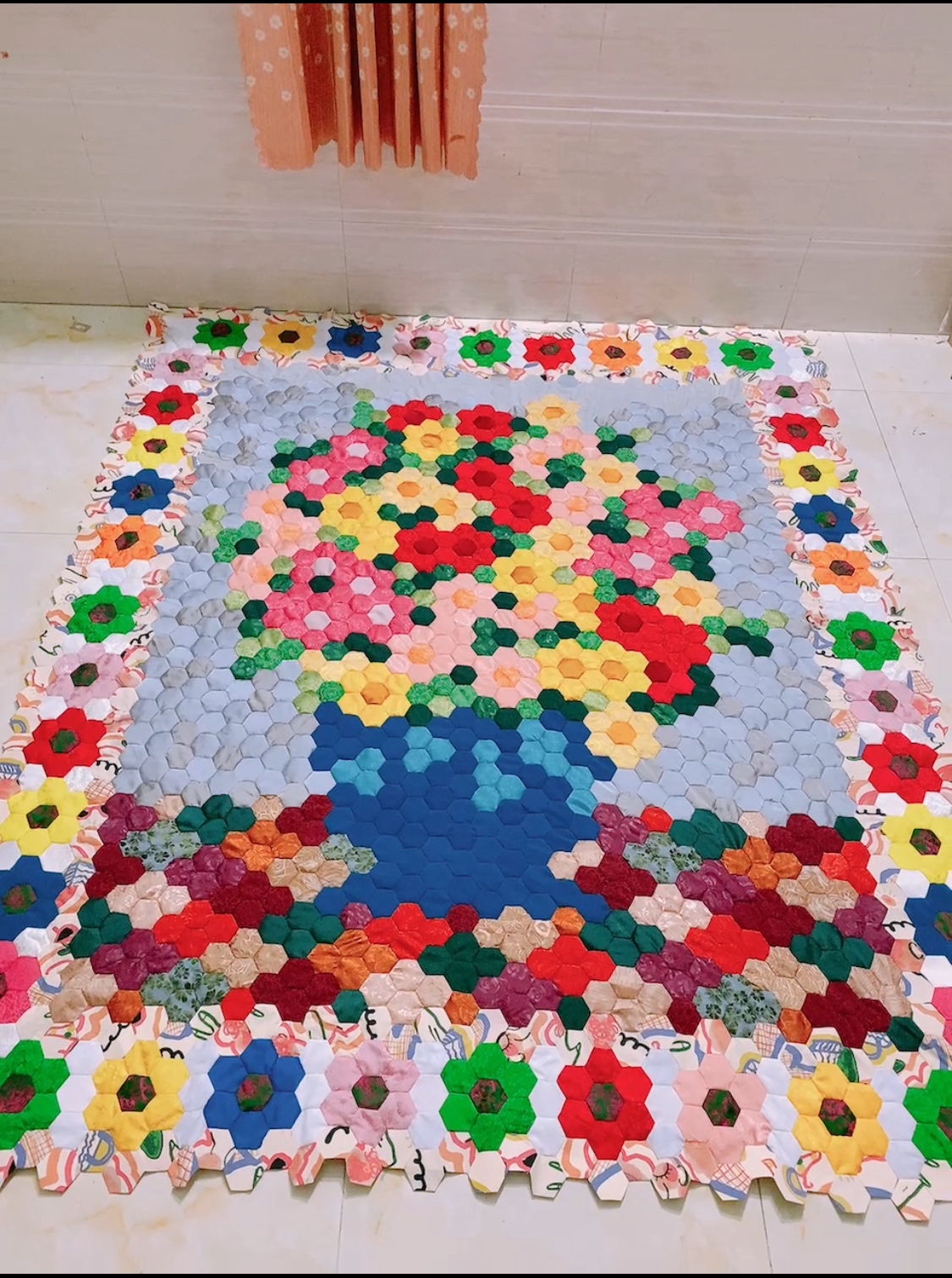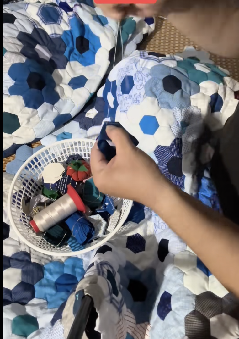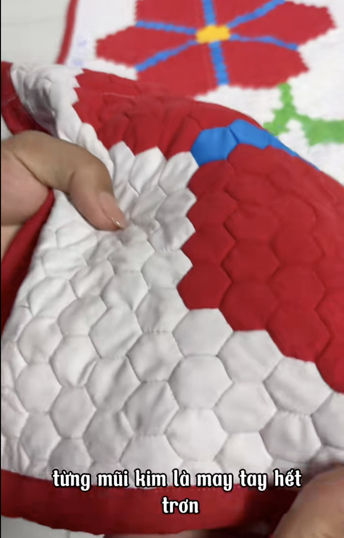 Chăn lục giác đẹp như một bức tranh, là món đồ thường thấy trong các gia đình ở miền Tây (Ảnh: @pjoviolet)