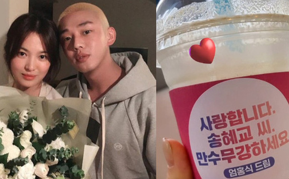 Lời nhắn của Yoo Ah In trên cốc gửi đến Song Hye Kyo là: "Em yêu chị Song Hye Kyo. Hãy luôn mạnh mẽ nhé"