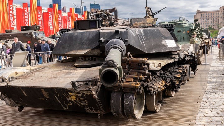 Xác xe tăng M1 Abrams được trưng bày tại Nga. Ảnh NI