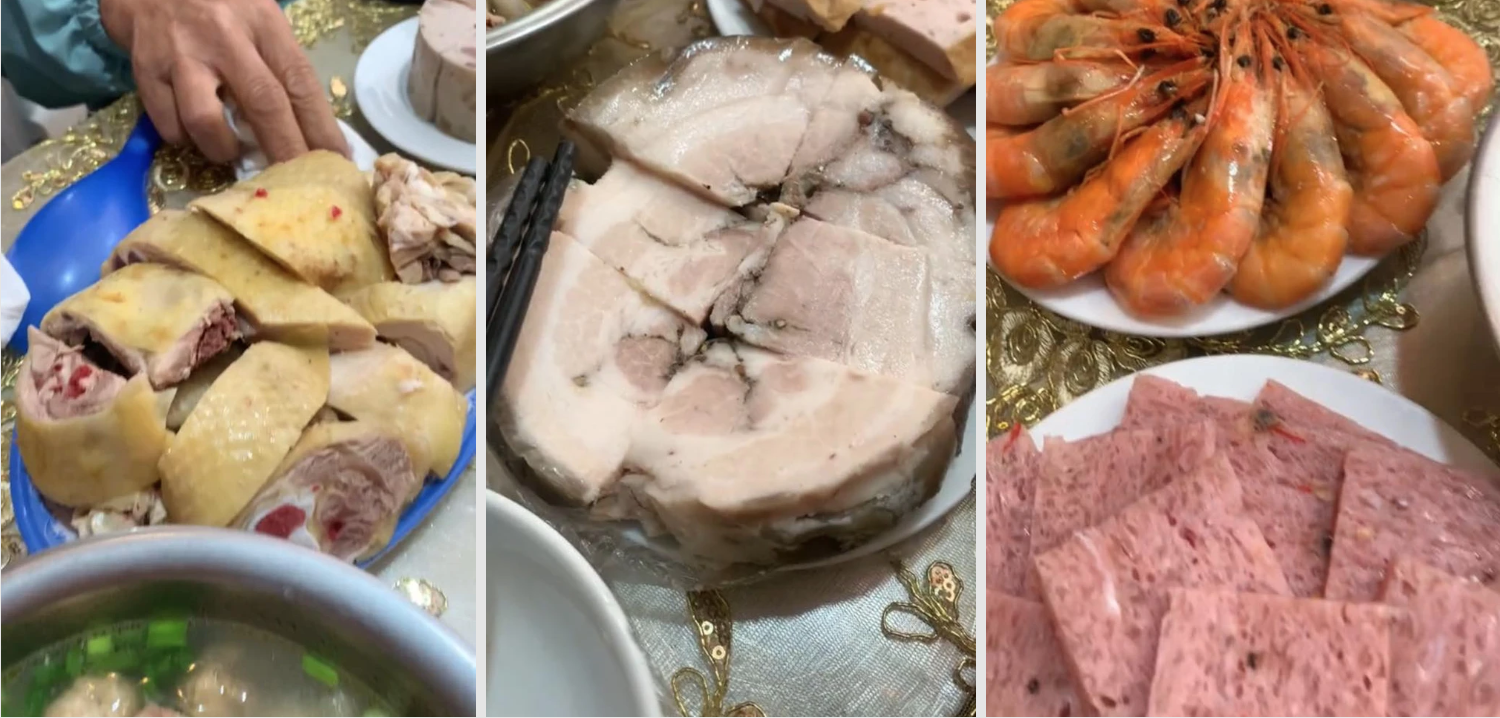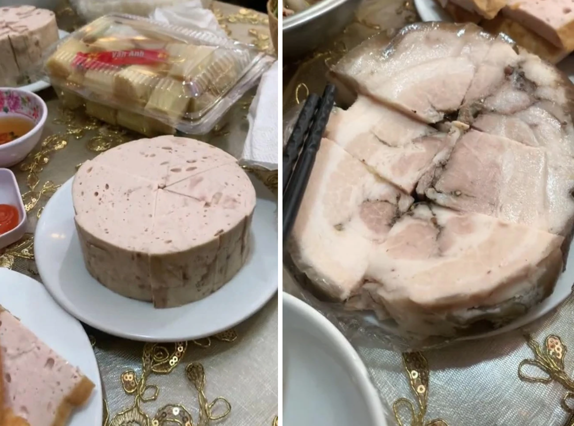 Theo quan sát, mâm cỗ này có tới 4 đĩa giò chả, trong đó gồm có 2 đĩa giò lụa, 1 đĩa chả mỡ và 1 đĩa giò thủ. Thông thường, các mâm cỗ phổ biến thường chỉ có từ 1 - 2 đĩa giò chả, bởi vậy mà với sự góp mặt của tận 4 đĩa giò chả như vậy đã khiến cho các cư dân mạng tò mò và vô cùng thích thú.