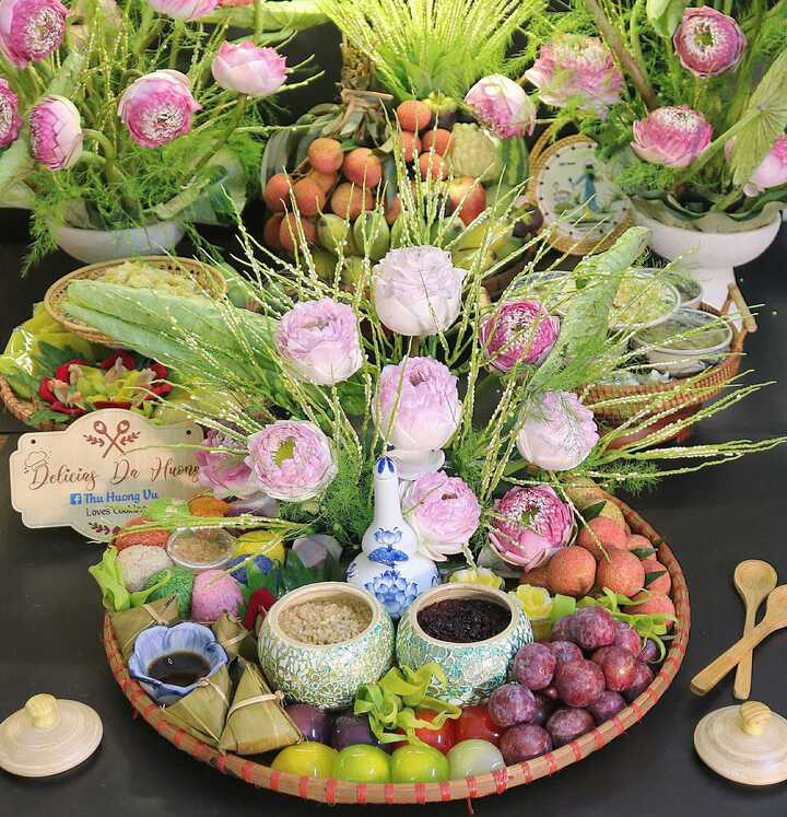 Mâm cúng Tết Đoan ngọ ở miền Bắc được bày biện đẹp mắt. (Ảnh: Vũ Thu Hương)