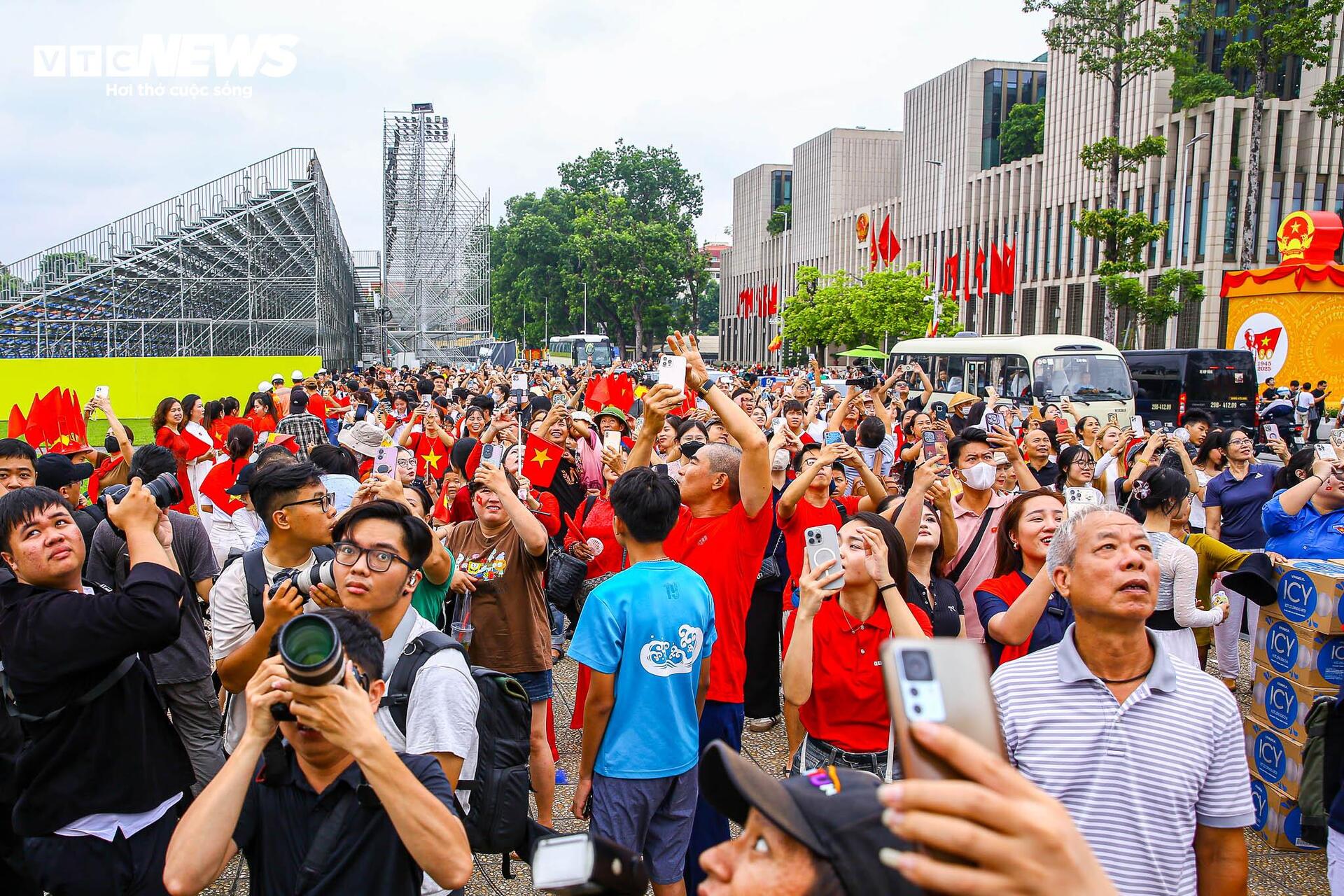Hàng trăm người dân có mặt từ sớm tại Quảng trường Ba Đình để ngắm nhìn dàn trực thăng lần đầu hợp luyện bay trên Quảng trường Ba Đình.