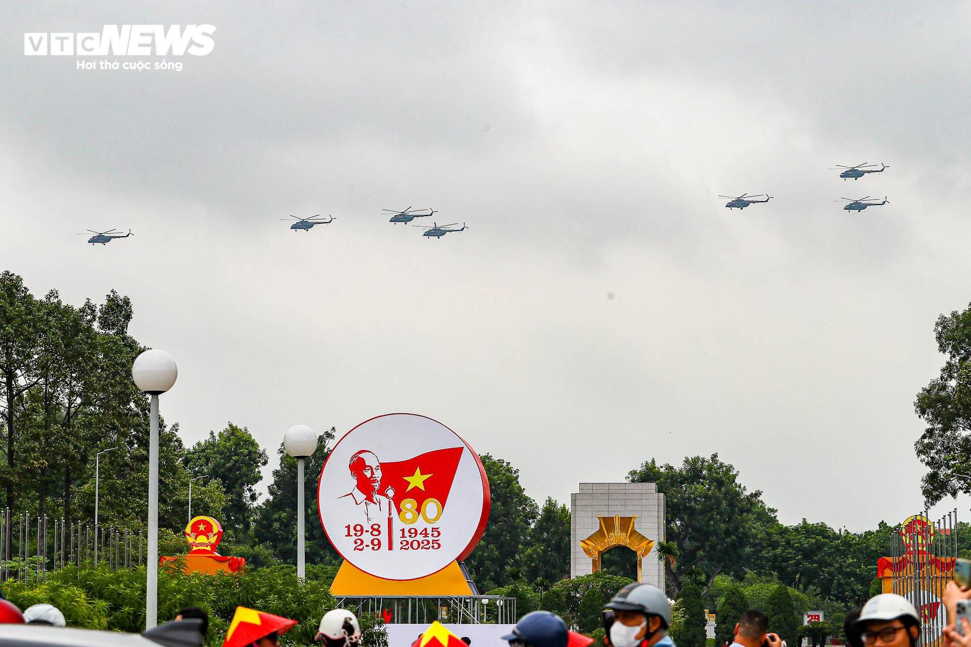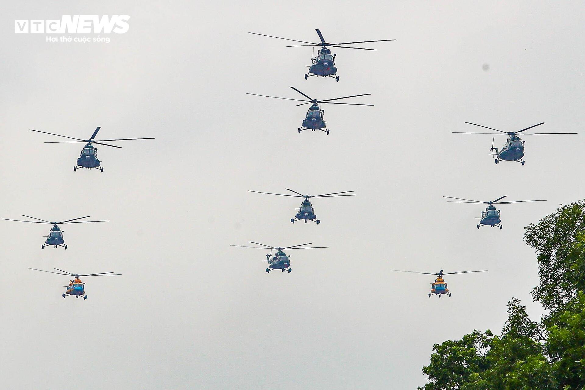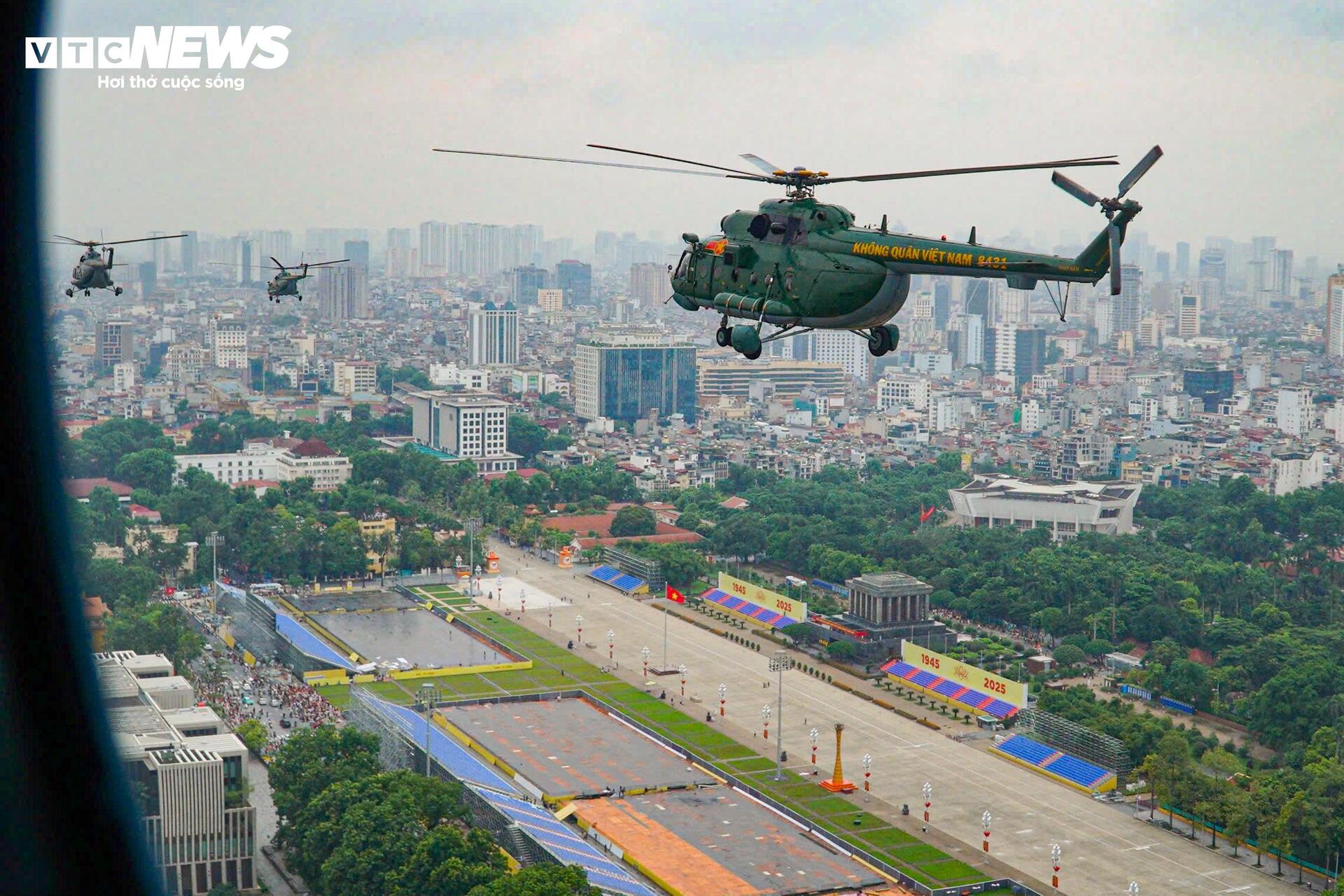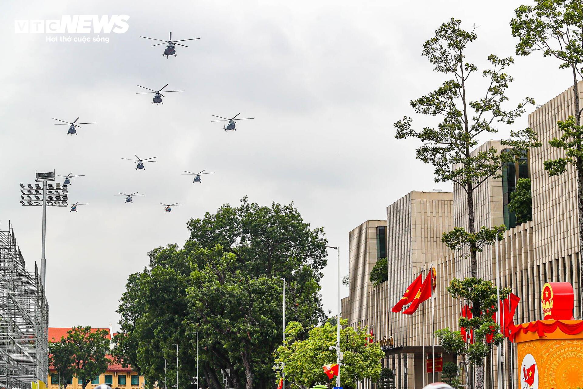 Biên đội trực thăng bay tổng cộng 3 lượt qua Quảng trường Ba Đình.