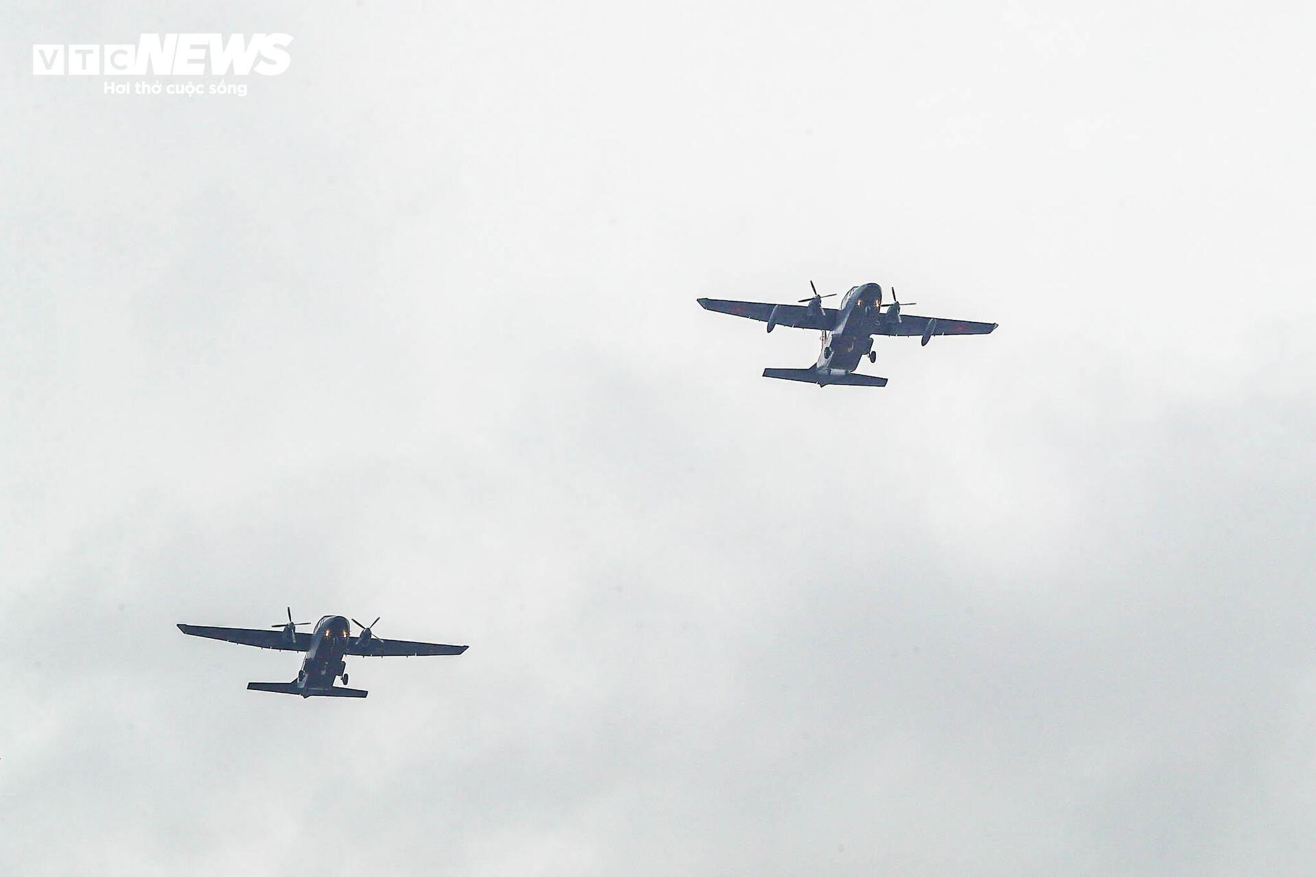 Ngay sau biên đội 10 chiếc trực thăng là biên đội bay gồm 2 chiếc máy bay Casa.