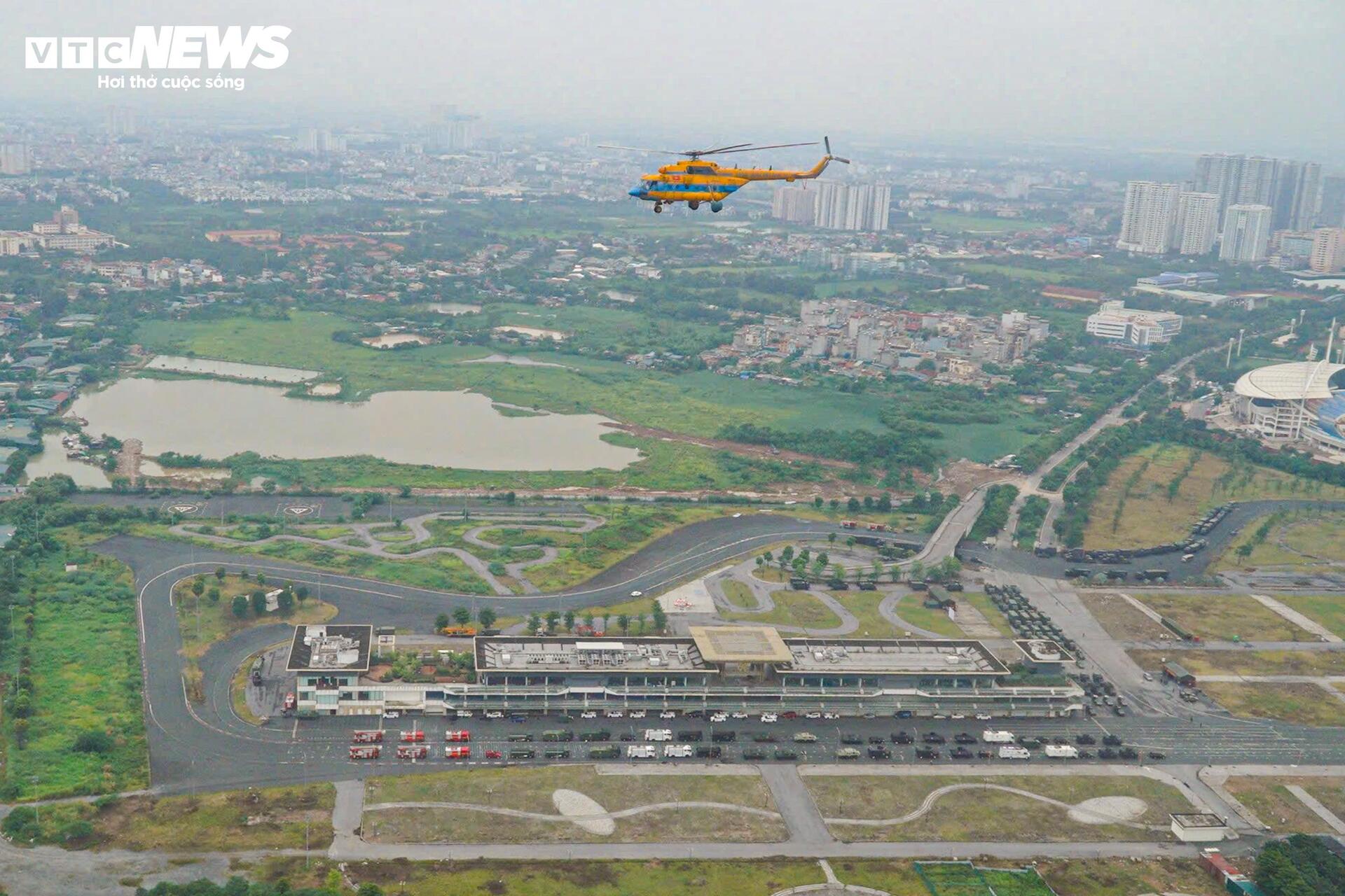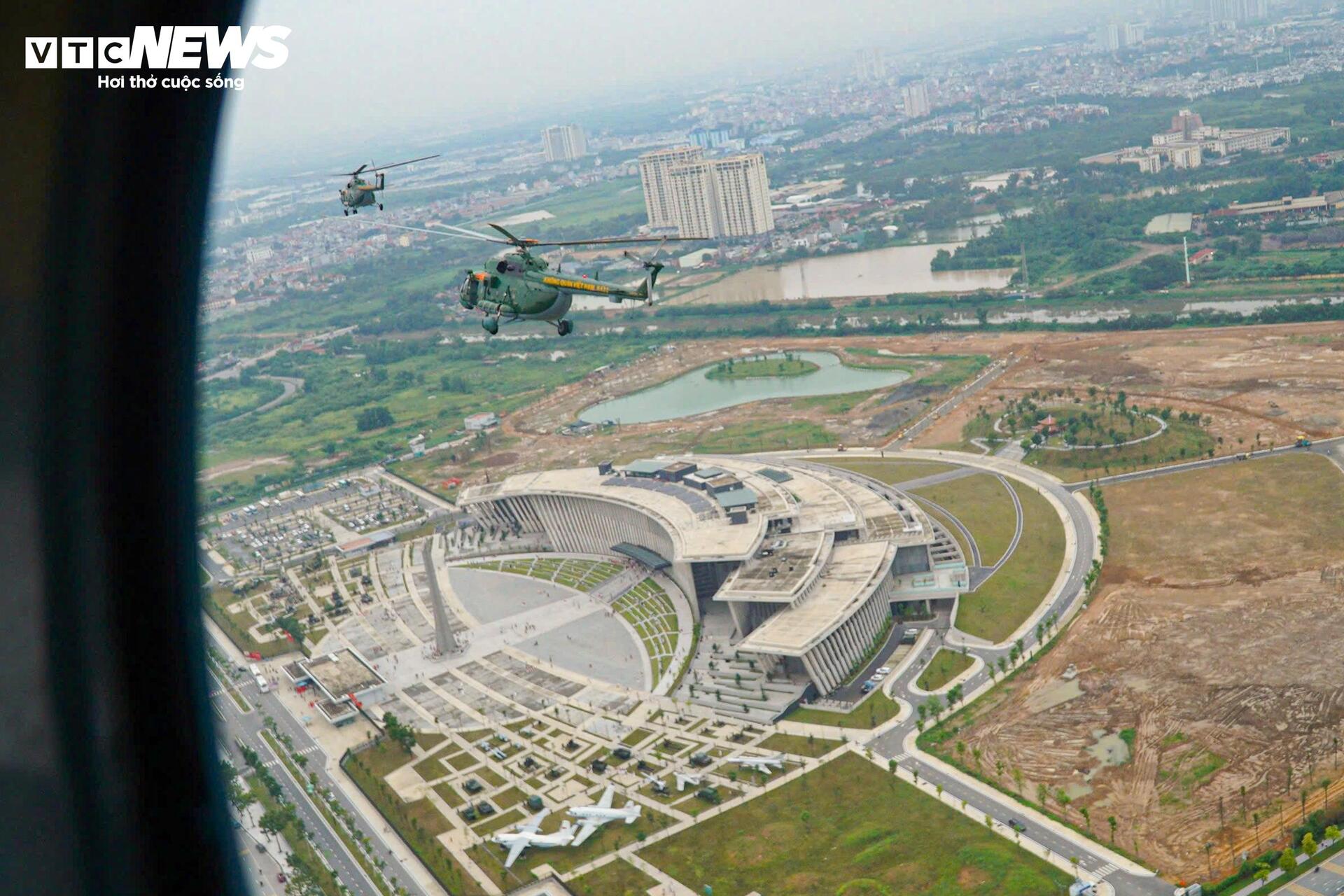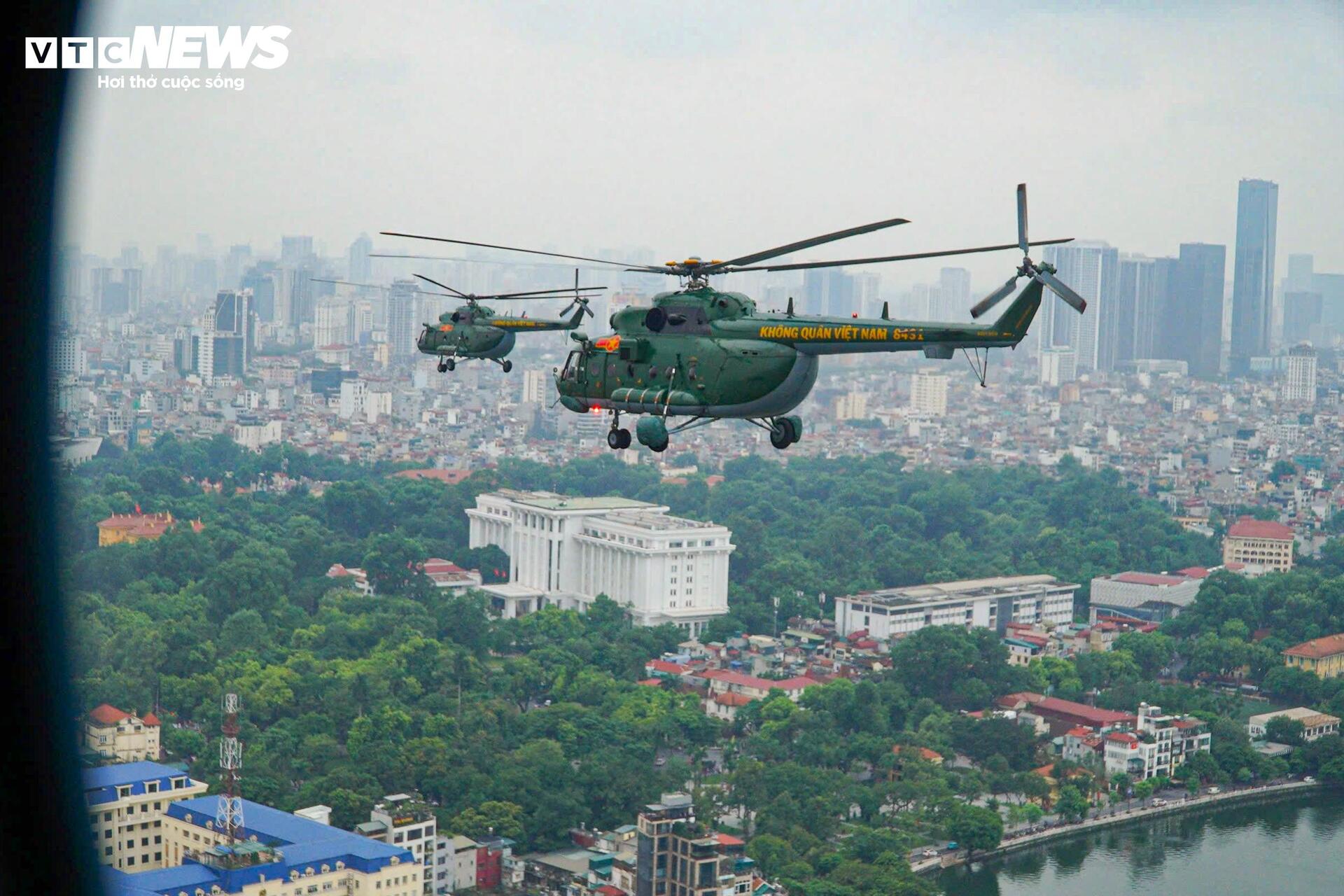 Khoảng 11h ngày 21/8, biên đội 10 máy bay trực thăng, bay đội hình tiến qua khu vực trung tâm Hà Nội, bay qua Quảng trường Ba Đình.