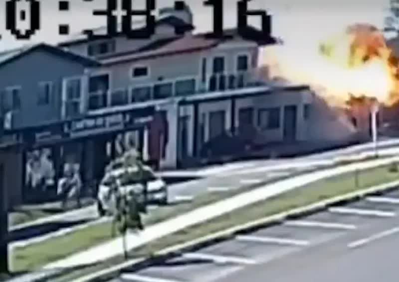 Máy bay đâm vào nhà hàng bốc cháy dữ dội như quả cầu lửa, người trên đường tháo chạy