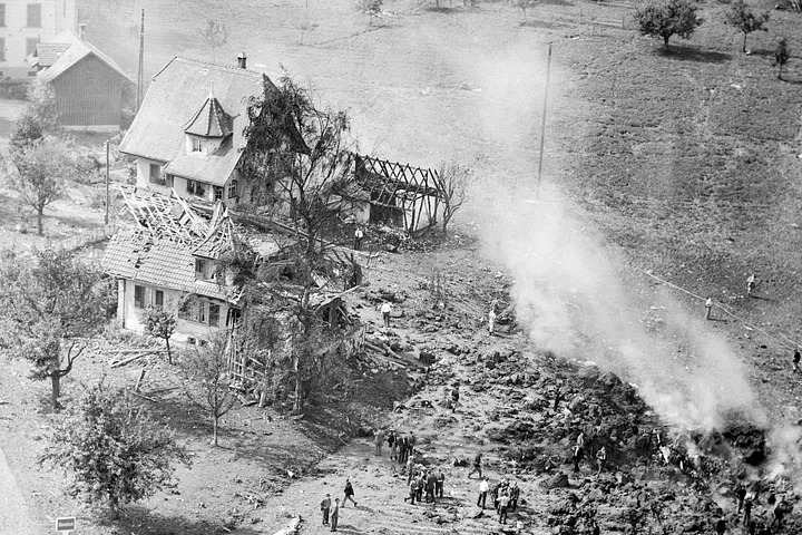 Người dân tại ngôi làng Dürrenäsch gần đó đã nghe thấy tiếng gầm rú chói tai. Một nhân chứng thấy chiếc máy bay lao thẳng đứng xuống một cánh đồng rìa làng. Tiếng nổ làm rung chuyển mặt đất, lửa bùng lên, các mảnh vỡ bắn tung xé toạc cả mái nhà xung quanh.