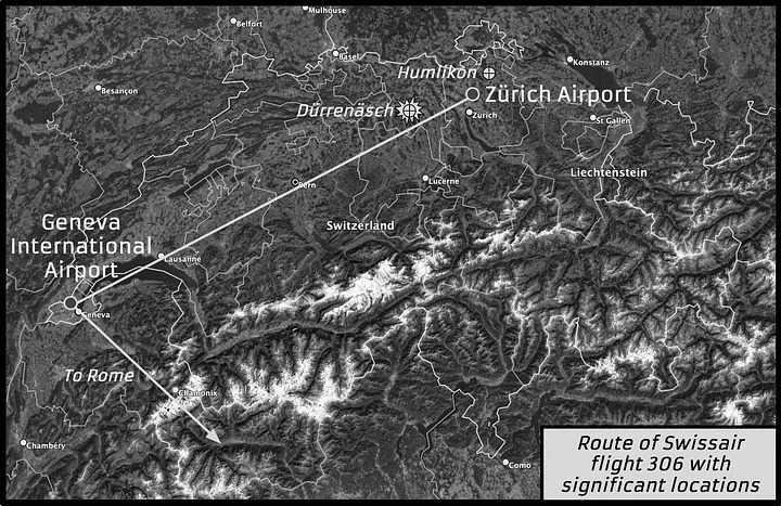 Vào ngày đã định, đoàn từ Humlikon đến Sân bay Zurich để lên chuyến bay mang số hiệu 306, xuất phát lúc 7h sáng đến Geneva. Trên máy bay có tổng cộng 74 hành khách và 6 phi hành đoàn, bao gồm 2 phi ông và 4 tiếp viên.