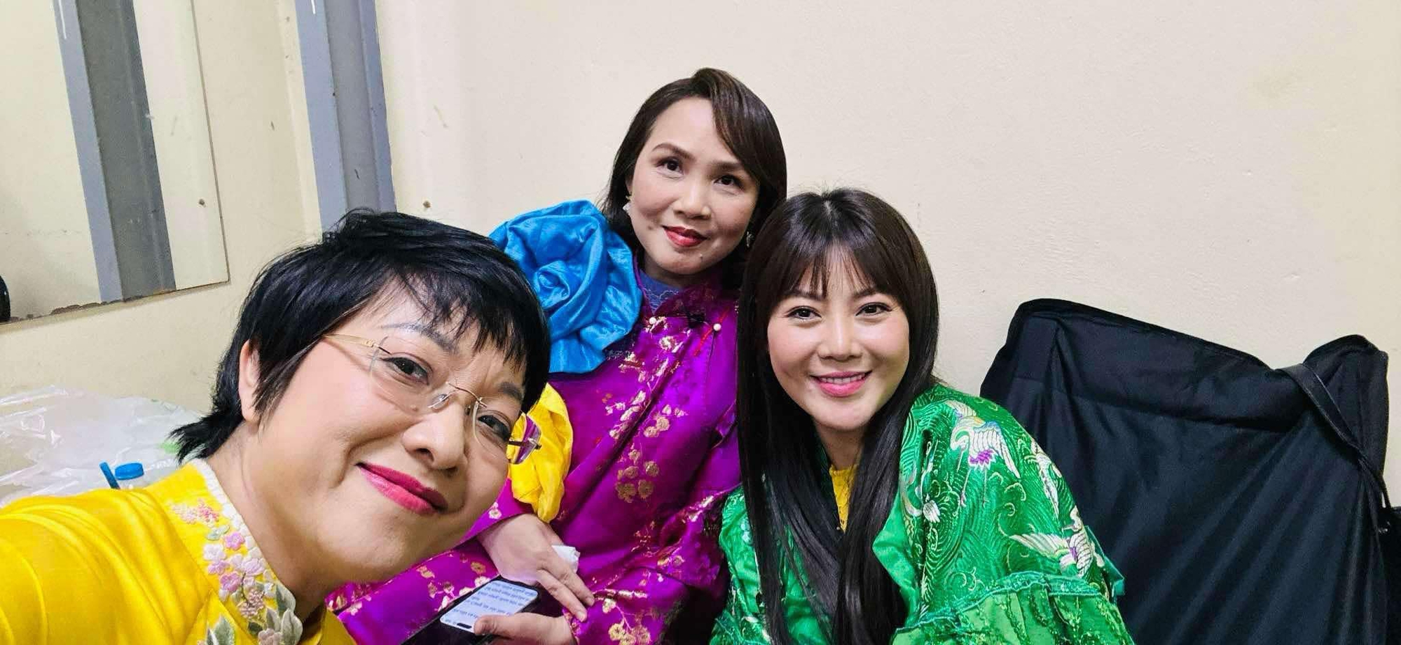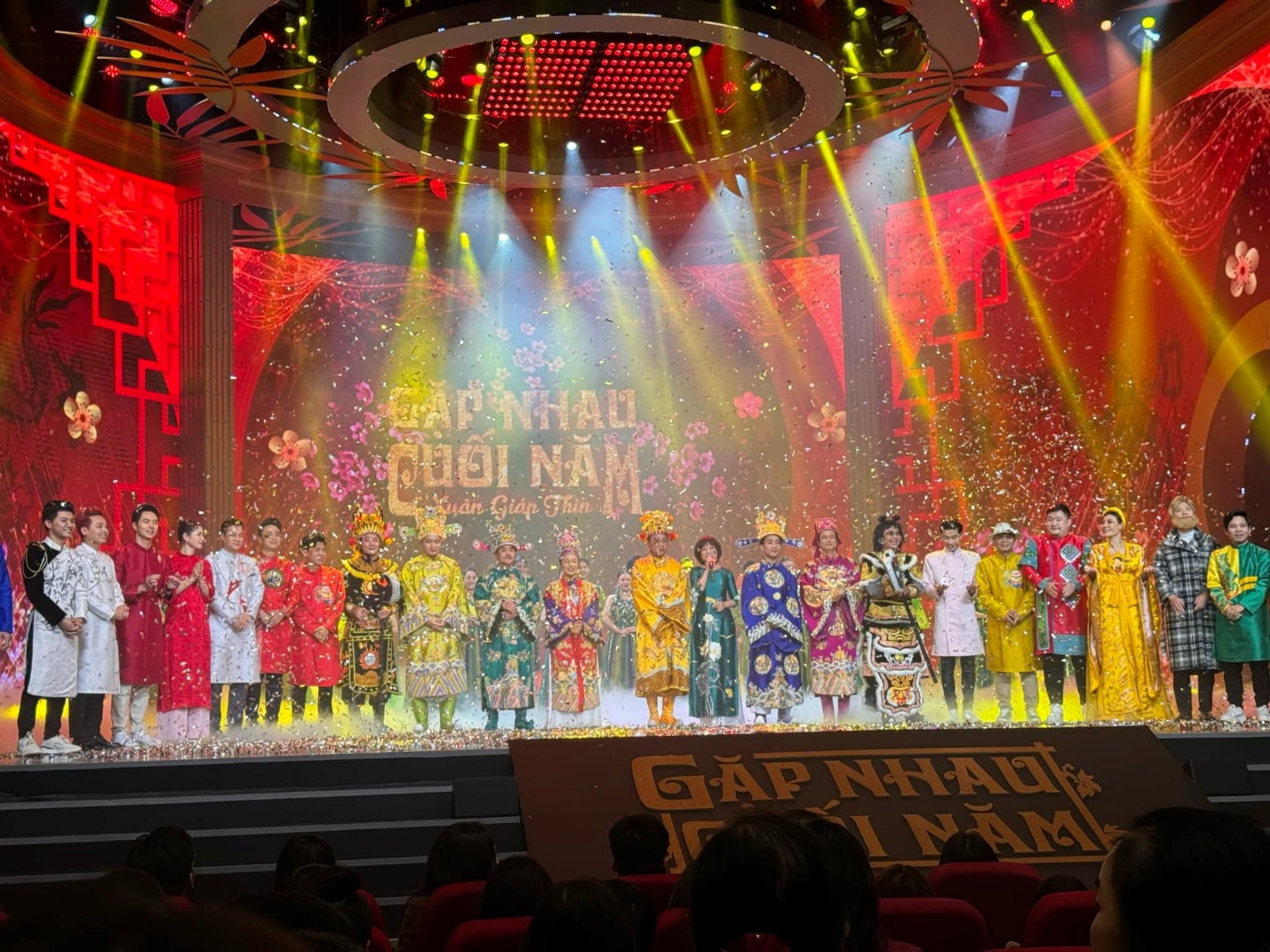 MC Thảo Vân (áo dài xanh) cùng với dàn Táo năm 2024