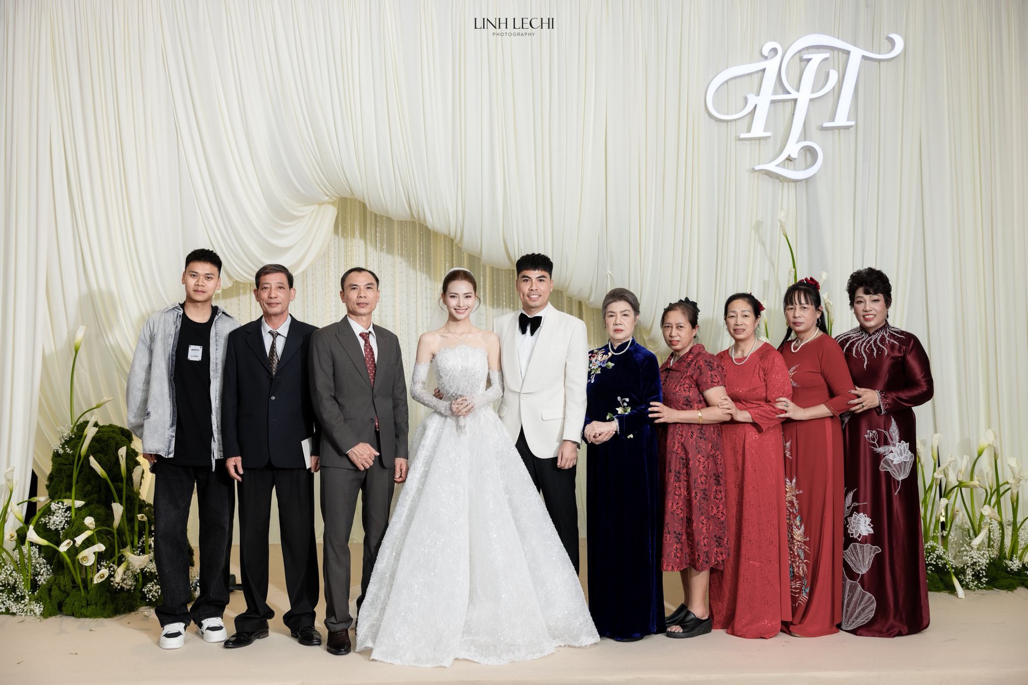 Vợ chồng Đức Huy - Mù Tạt chụp ảnh kỉ niệm với gia đình bên nội tại đám cưới