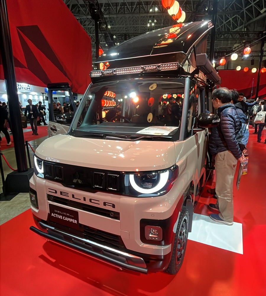 Bên cạnh mui bật, Delica Mini Active Camper còn được trang bị mái rèm ARB, thanh đèn phụ phía trước, tấm bảo vệ gầm và bộ lốp địa hình. Những trang bị này cho thấy xe nhiều khả năng sử dụng hệ dẫn động 4 bánh, kết hợp hệ thống treo được nâng thêm 25mm, giúp khoảng sáng gầm đạt 185mm – con số đáng chú ý đối với một mẫu keicar.