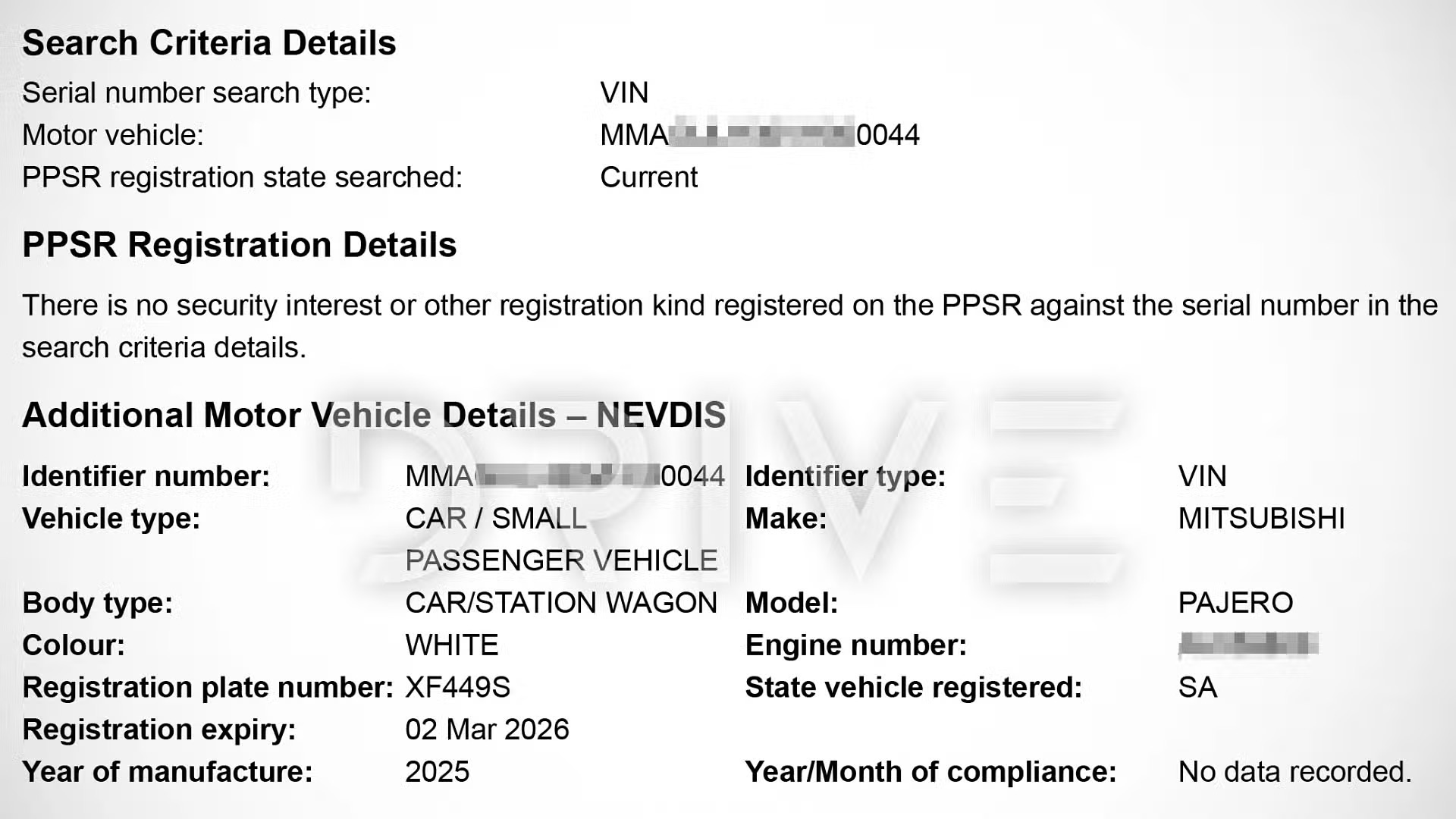 Thông tin về số khung (VIN) của một chiếc Pajero đăng ký tại Nam Úc đã được truy xuất thông qua hệ thống tra cứu tài sản cá nhân, qua đó làm sáng tỏ nguồn gốc xuất xứ của dòng xe này. Việc chính phủ Nam Úc đăng ký tên gọi chính thức là Mitsubishi Pajero thay vì Pajero Sport dường như đã đặt dấu chấm hết cho những đồn đoán về việc hồi sinh cái tên biểu tượng này.